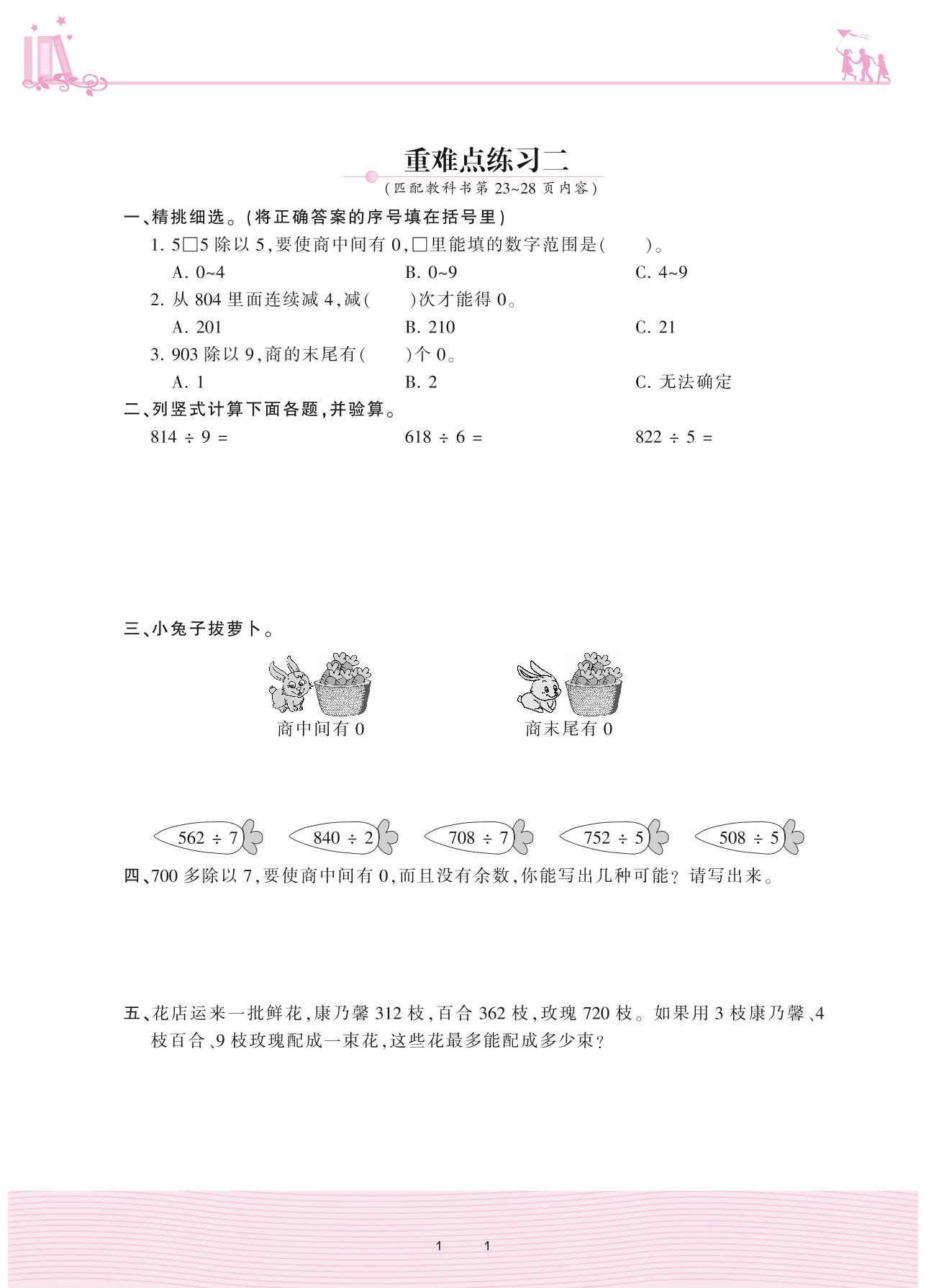 2021下册三年级数学人教版 2 除数是一位数的除法——重难点练习二