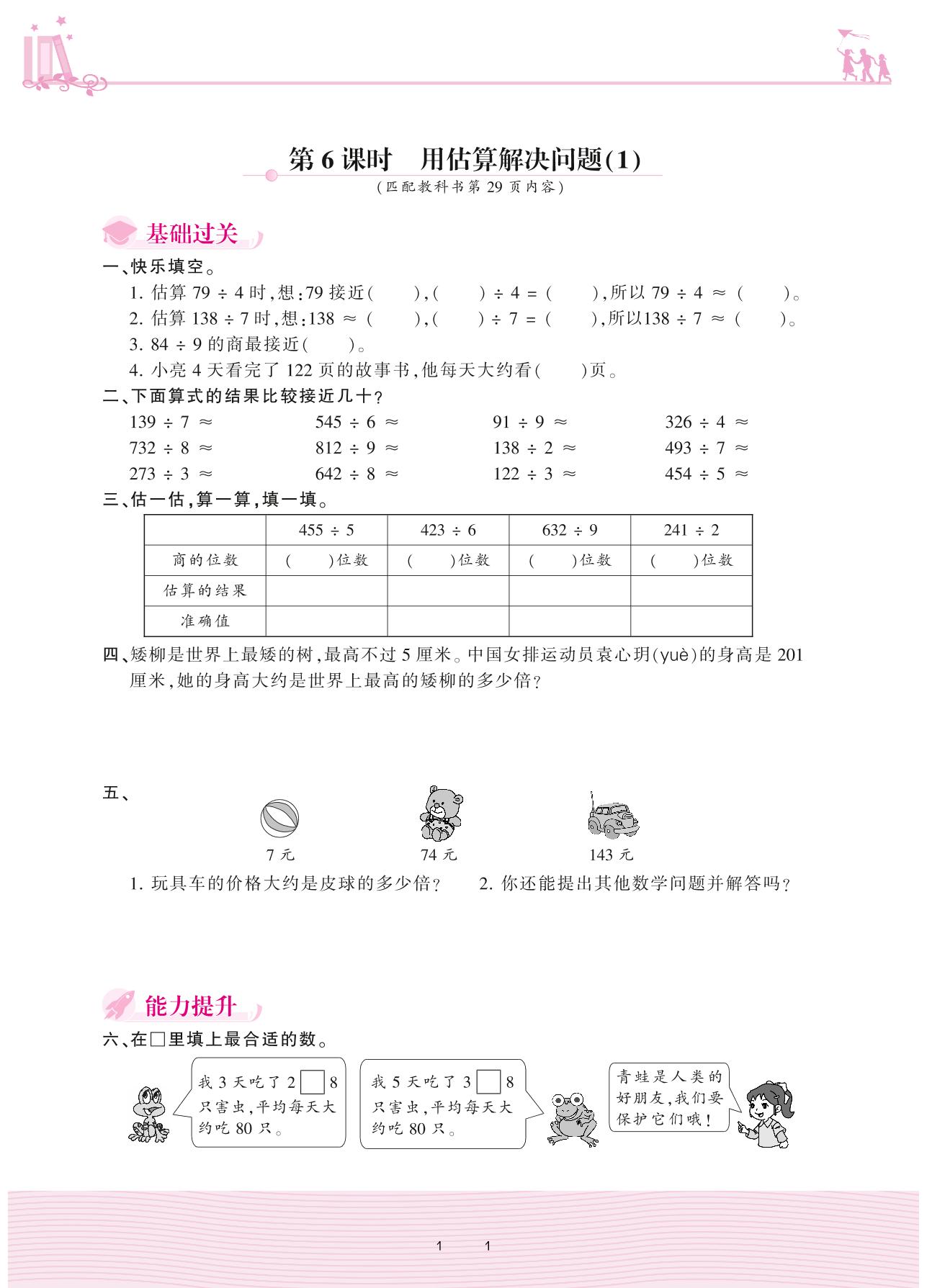 2021下册三年级数学人教版 2 除数是一位数的除法 2. 笔算除法——第6课时 用估算解决问题(1)