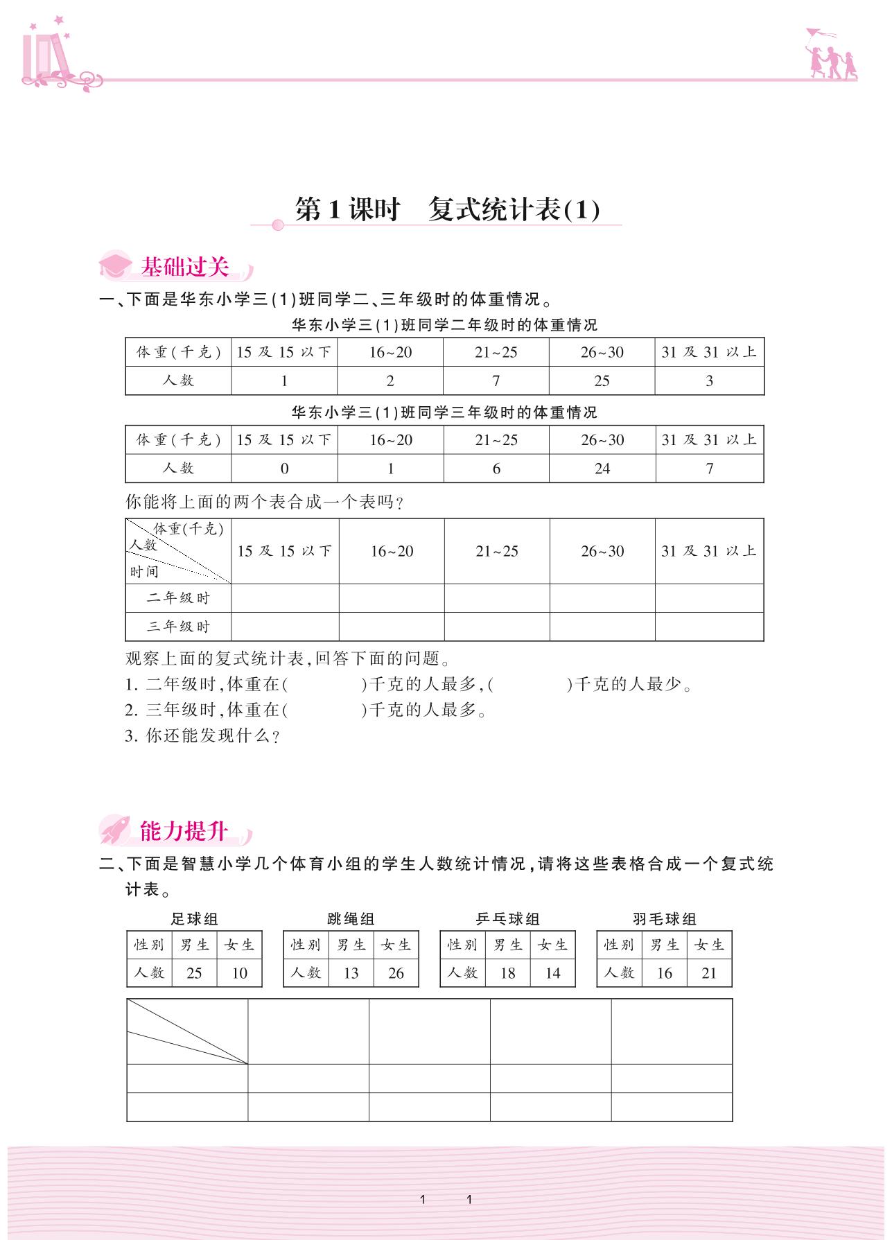 2021下册三年级数学人教版 3 复式统计表——第1课时 复式统计表(1)