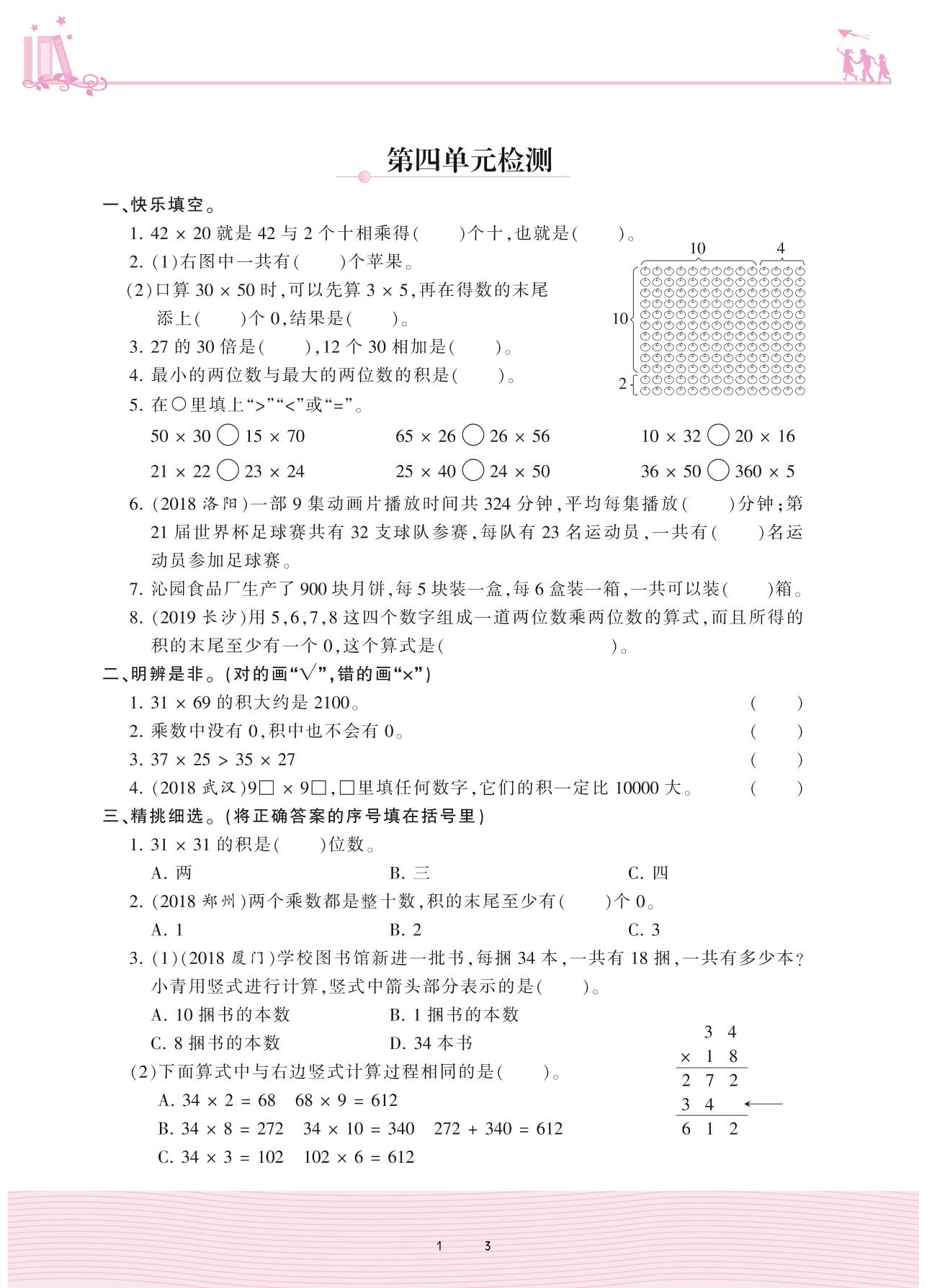 2021下册三年级数学人教版 4 两位数乘两位数——第四单元检测