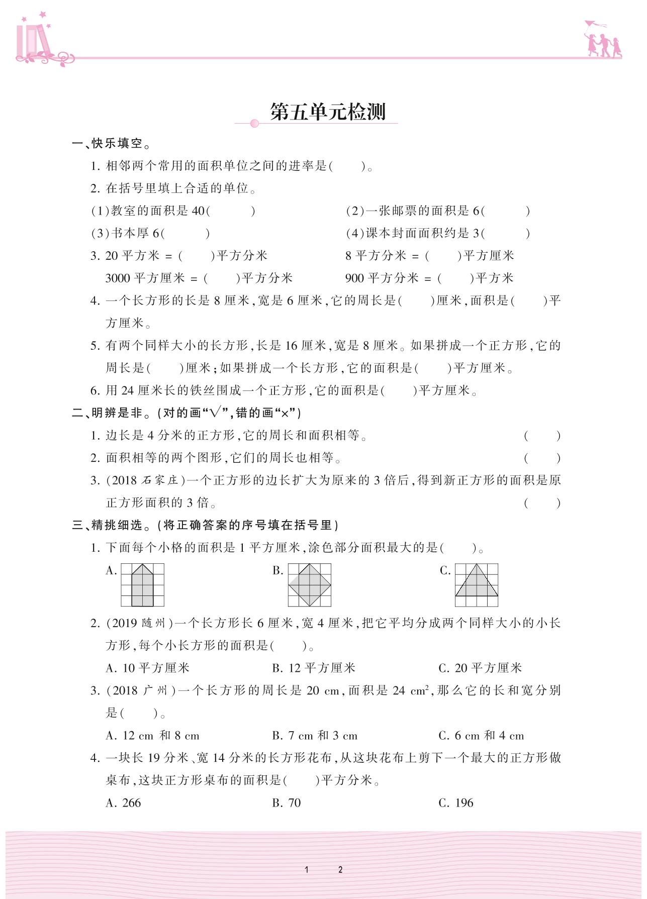 2021下册三年级数学人教版 5 面积——第五单元检测
