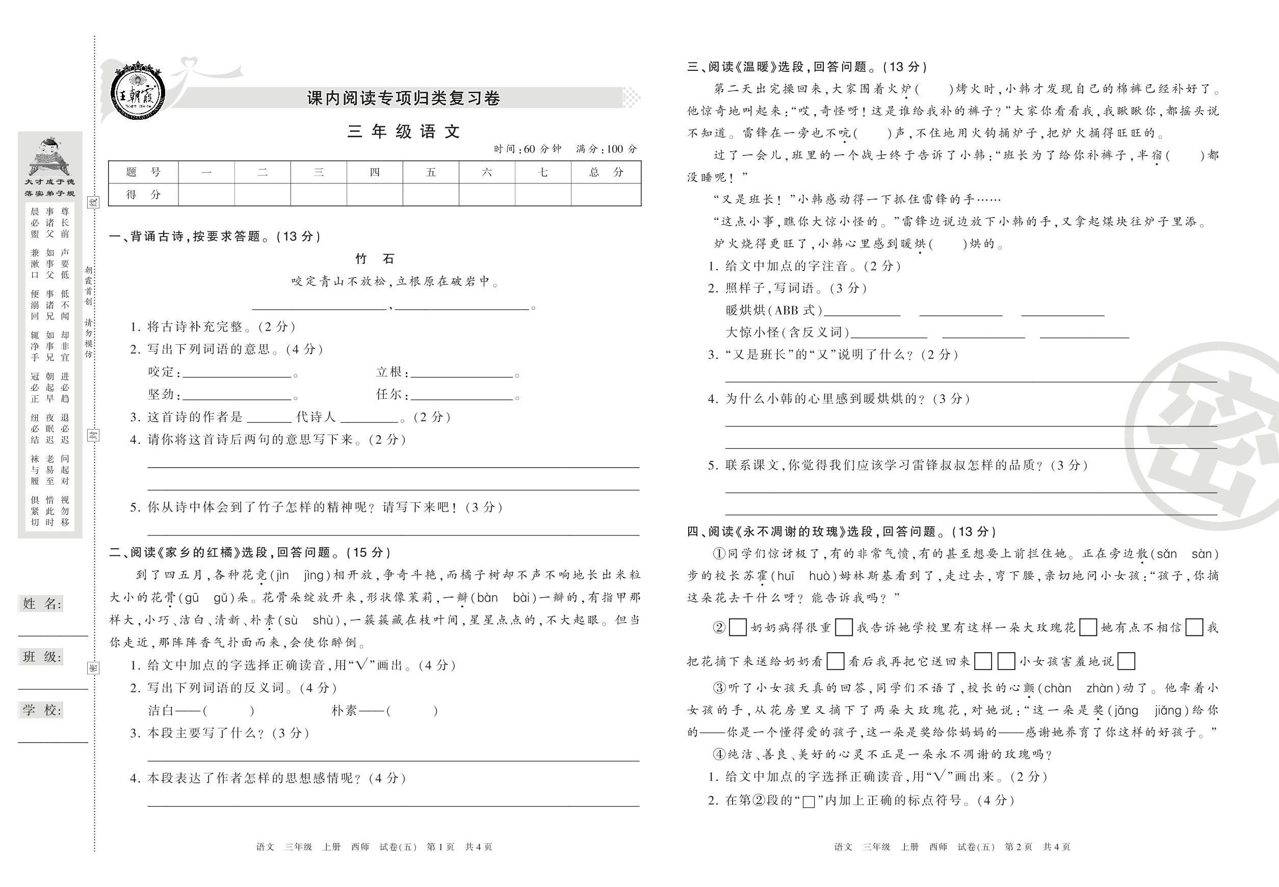 王朝霞期末专项卷三年级上册语文(西师版)_R210801100509【5】
