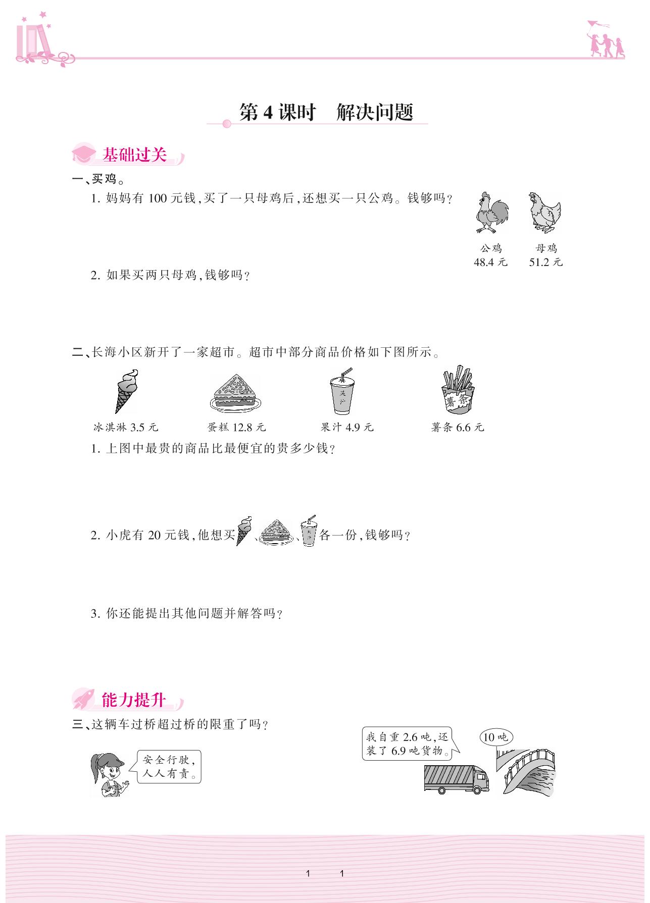 2021下册三年级数学人教版 7 小数的初步认识——第4课时 解决问题