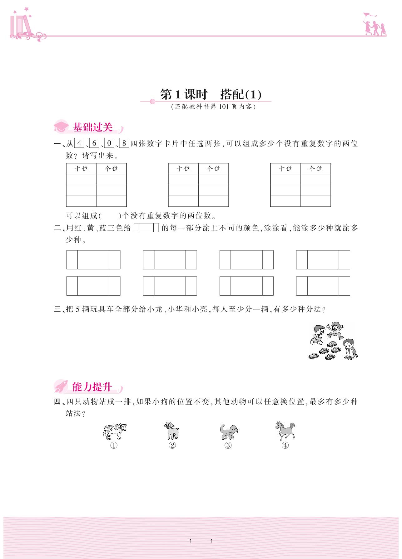 2021下册三年级数学人教版 8 数学广角——搭配(二)——第1课时 搭配(1)