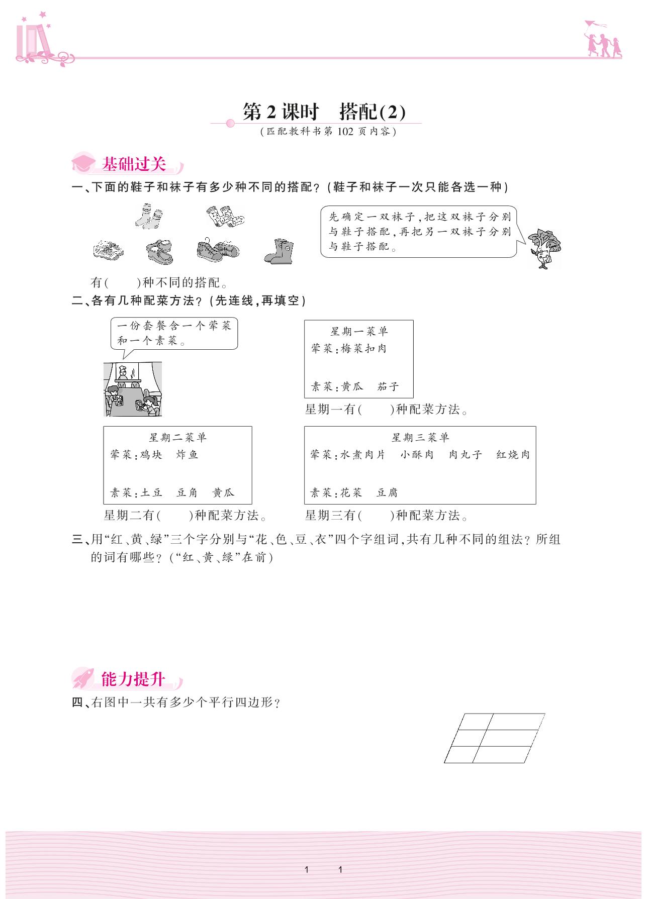 2021下册三年级数学人教版 8 数学广角——搭配(二)——第2课时 搭配(2)