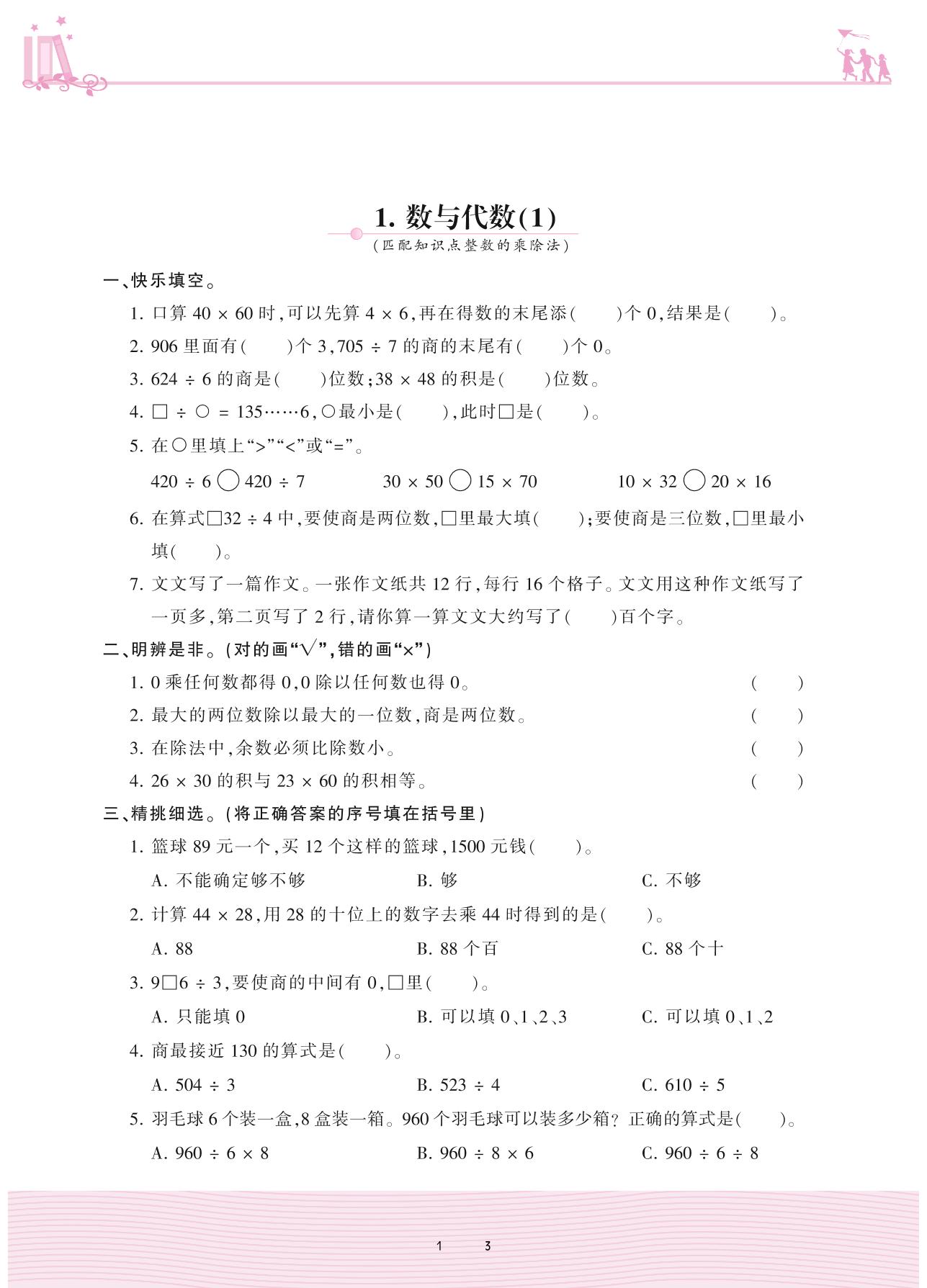 2021下册三年级数学人教版 9 总复习——1. 数与代数(1)