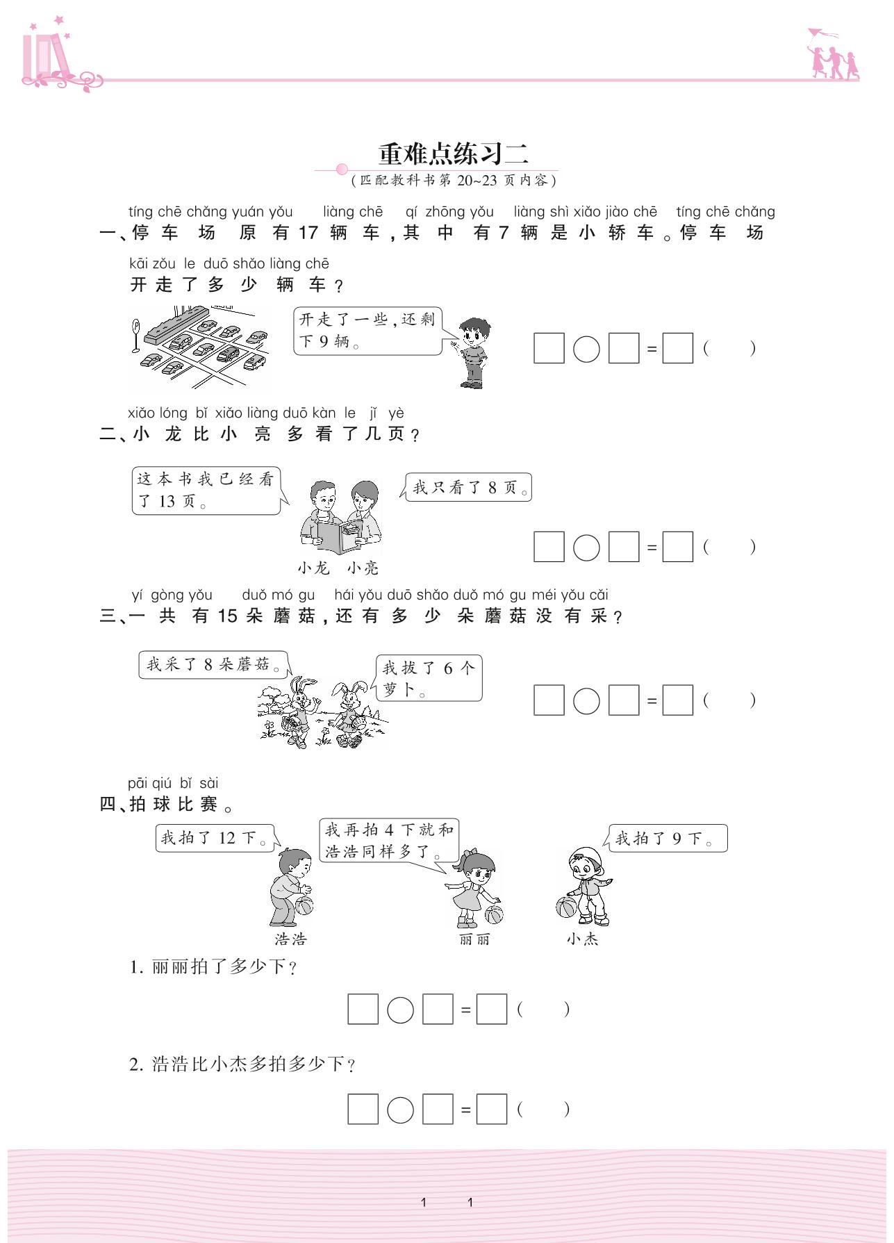 2021下册一年级数学人教版 2 20以内的退位减法——重难点练习二