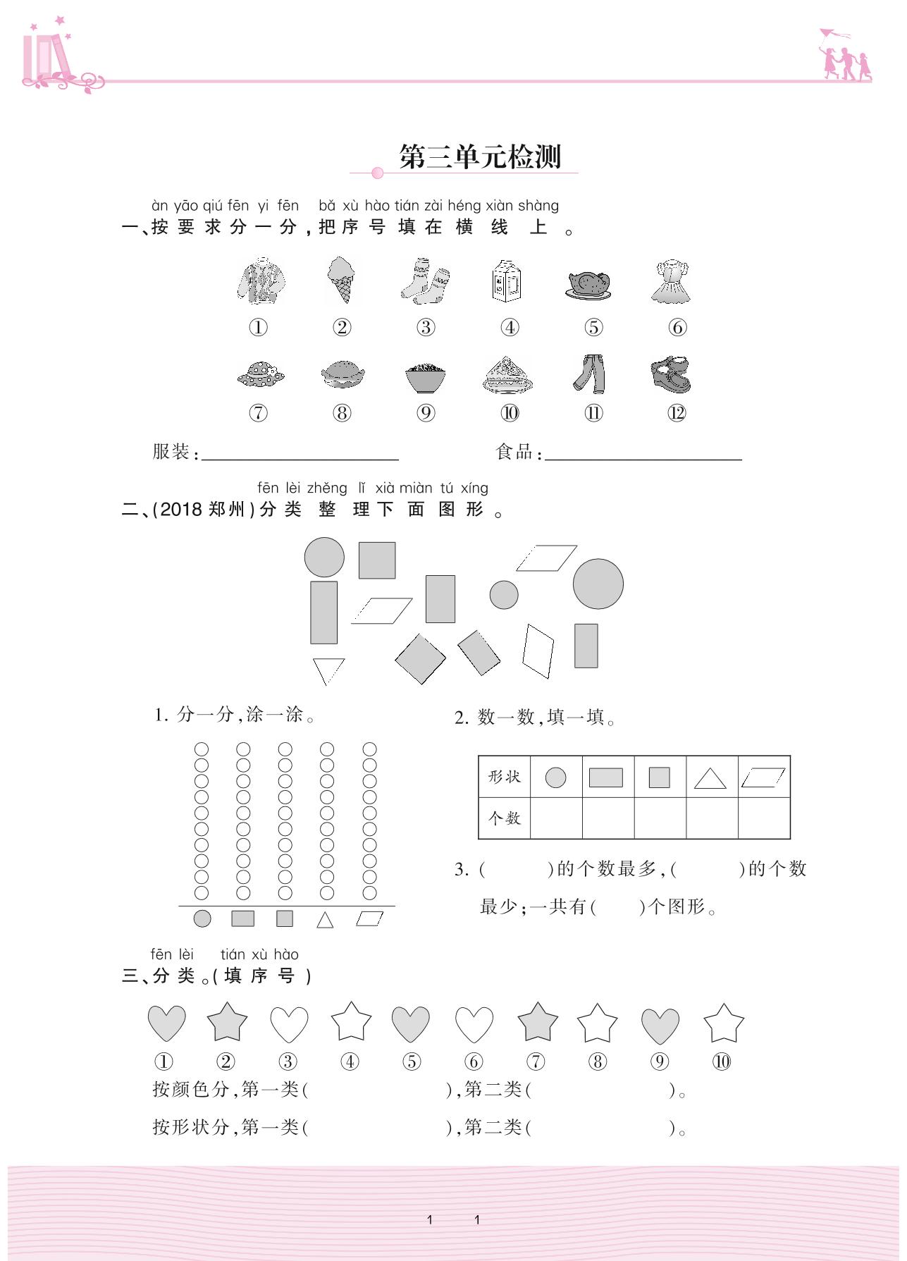 2021下册一年级数学人教版 3 分类与整理——第三单元检测