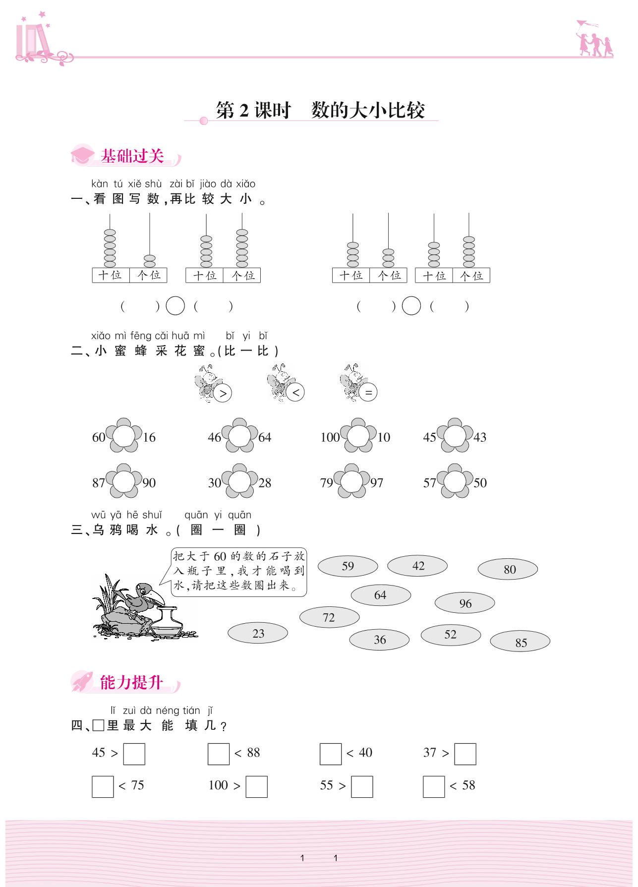 2021下册一年级数学人教版 4 100以内数的认识 2. 数的顺序 比较大小——第2课时 数的大小比较