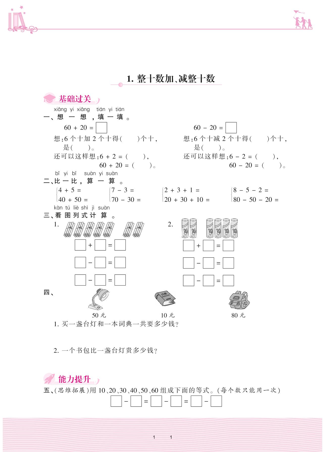2021下册一年级数学人教版 6 100以内的加法和减法(一) 1. 整十数加、减整十数