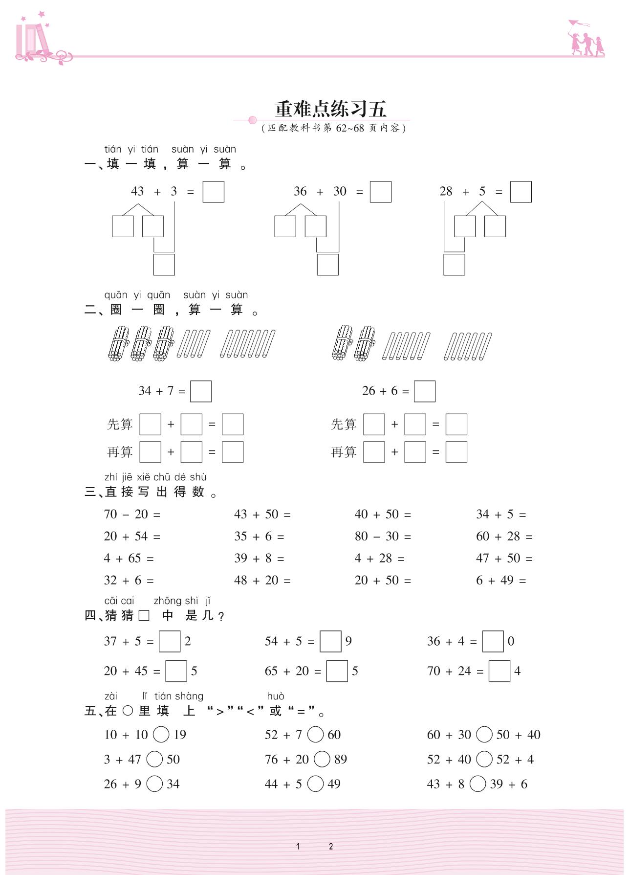 2021下册一年级数学人教版 6 100以内的加法和减法(一)——重难点练习五