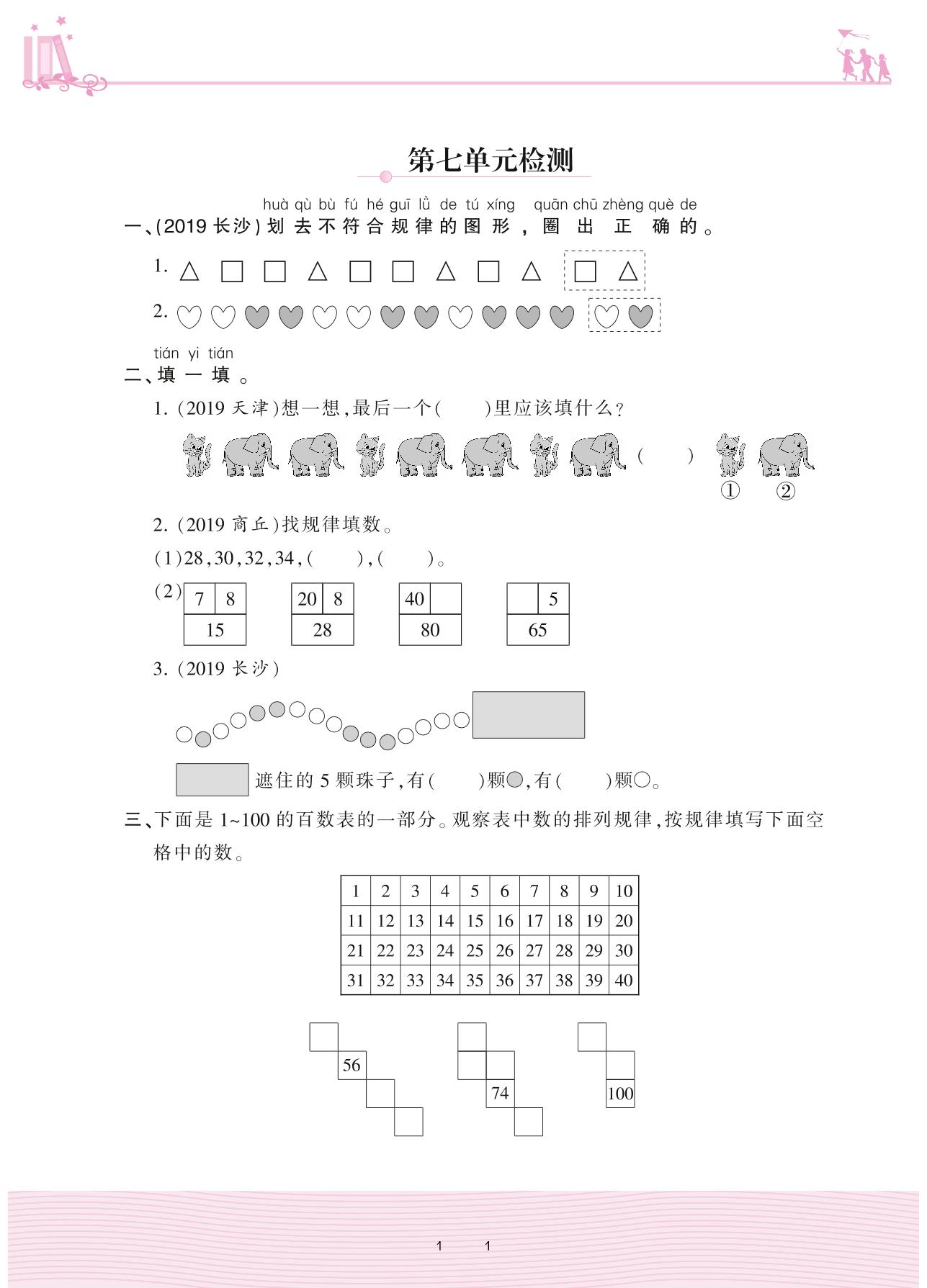 2021下册一年级数学人教版 7 找规律——第七单元检测