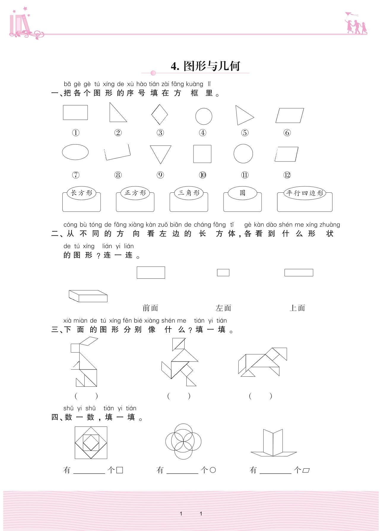 2021下册一年级数学人教版 8 总复习——4. 图形与几何