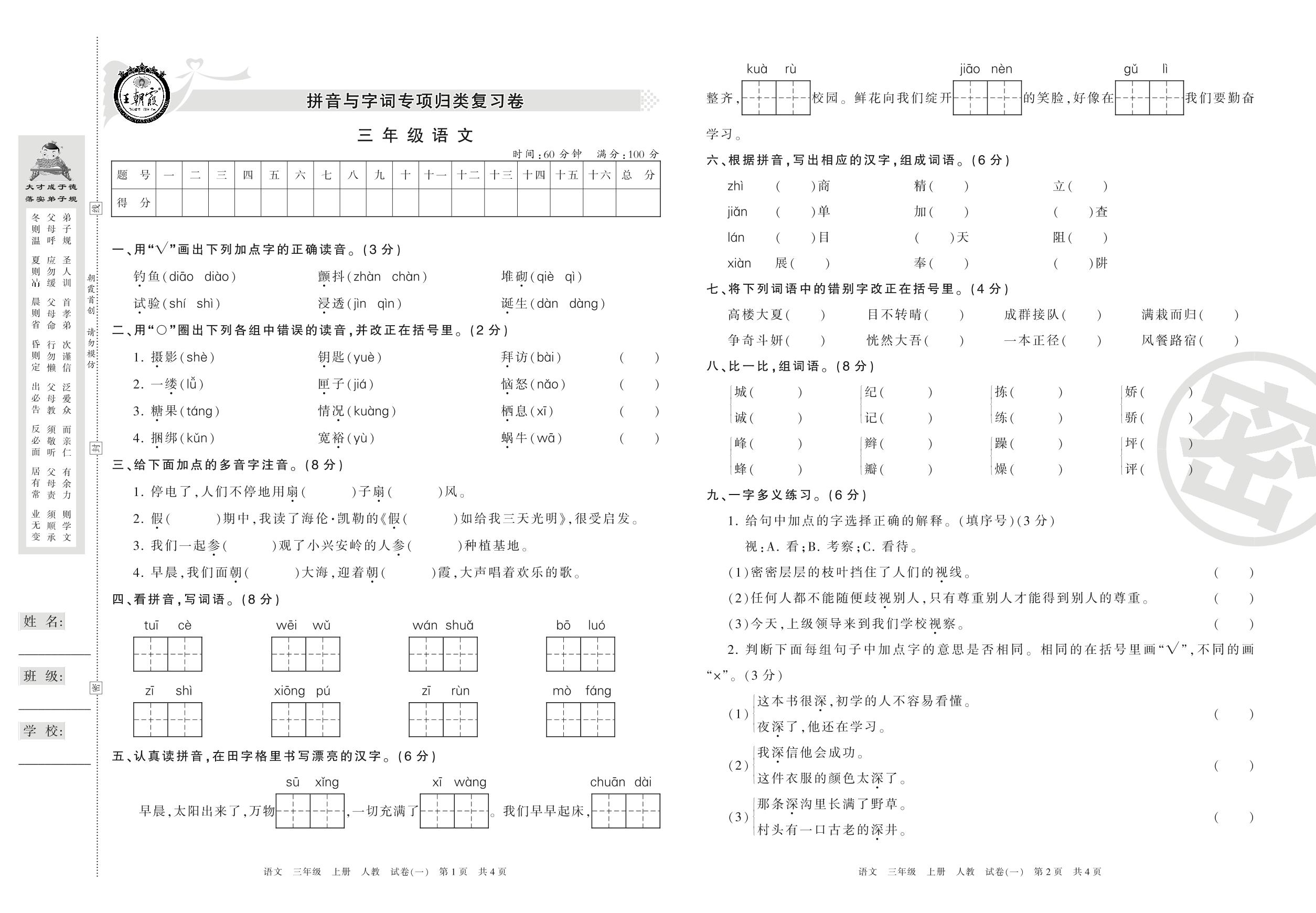 三年级语文人教版上册专项卷