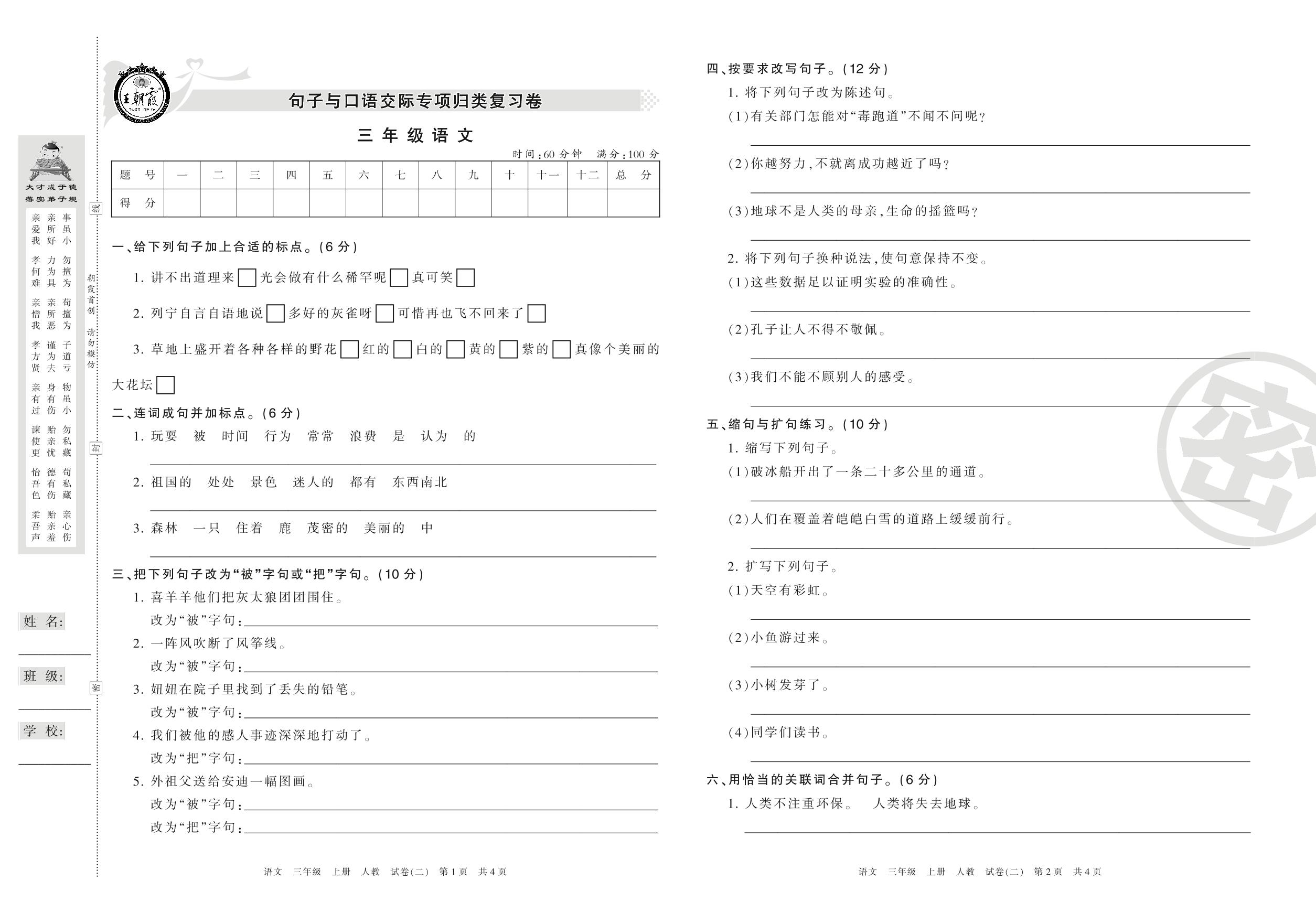 王朝霞期末专项卷三年级上册语文(人教版)_R210801100621【2】