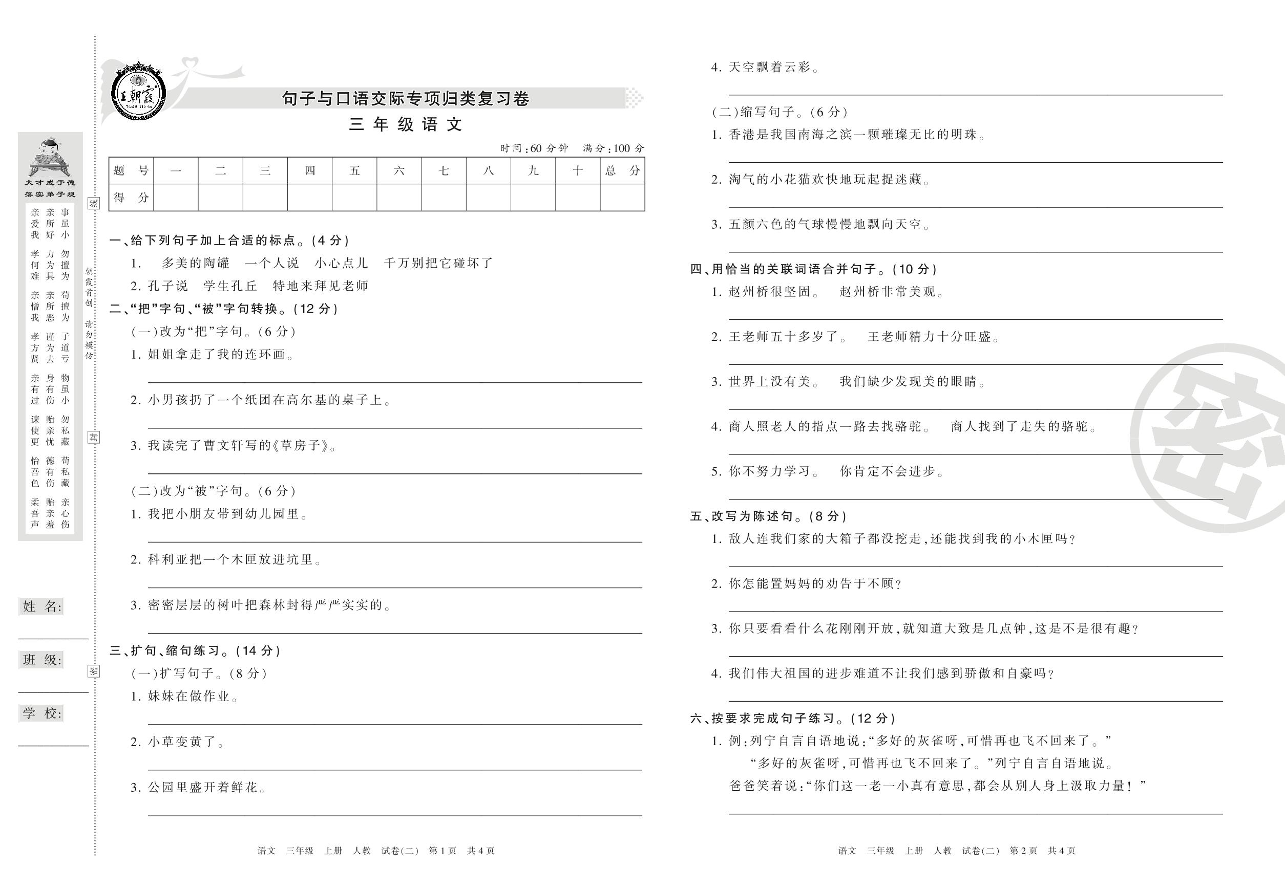 王朝霞期末专项卷三年级上册语文(人教版)_R210801100651【2】