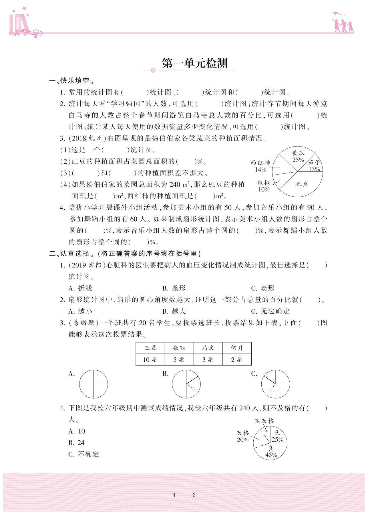 2021下册六年级数学苏教版 一 扇形统计图——第一单元检测