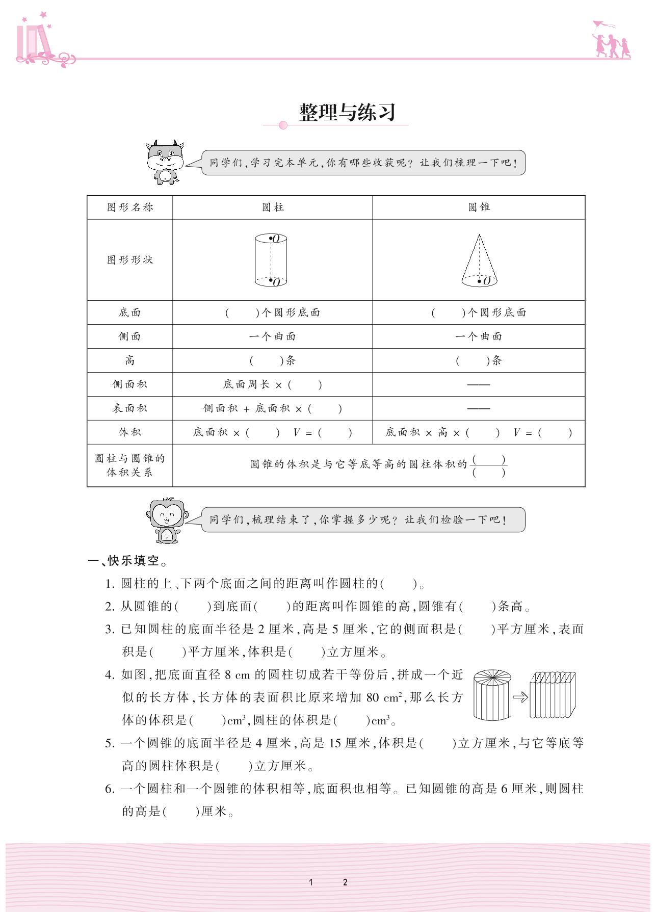 2021下册六年级数学苏教版 二 圆柱和圆锥——整理与练习