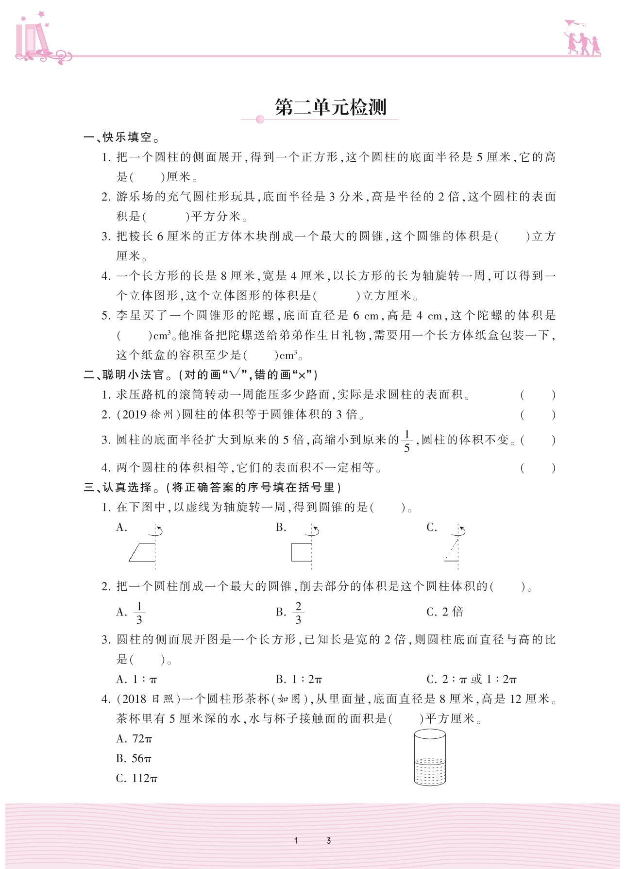 2021下册六年级数学苏教版 二 圆柱和圆锥——第二单元检测