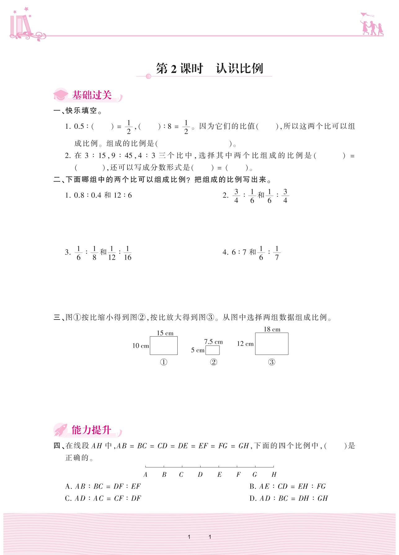 2021下册六年级数学苏教版 四 比例——第2课时 认识比例