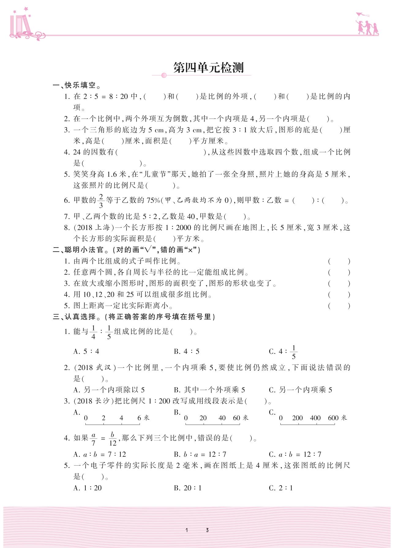 2021下册六年级数学苏教版 四 比例——第四单元检测