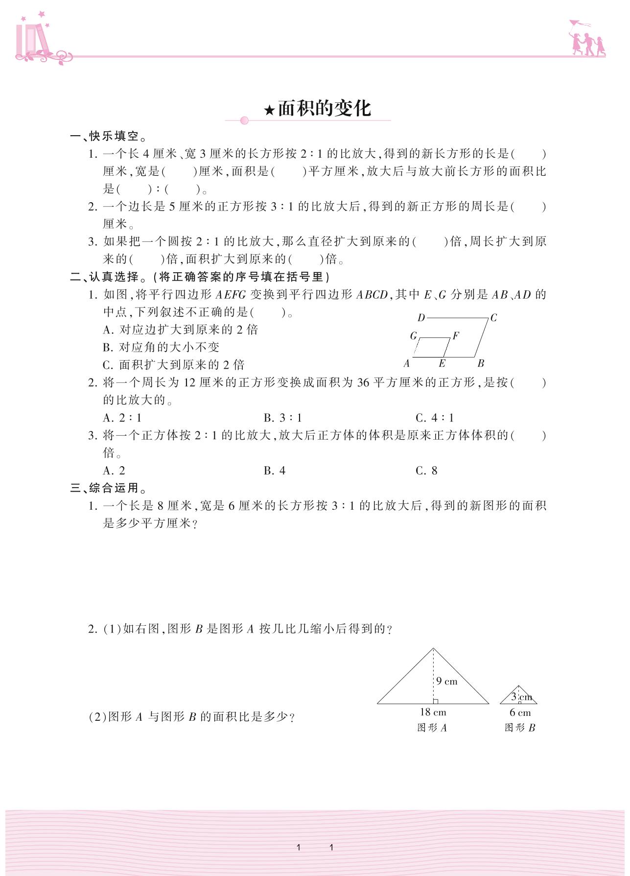 2021下册六年级数学苏教版 四 比例——★面积的变化