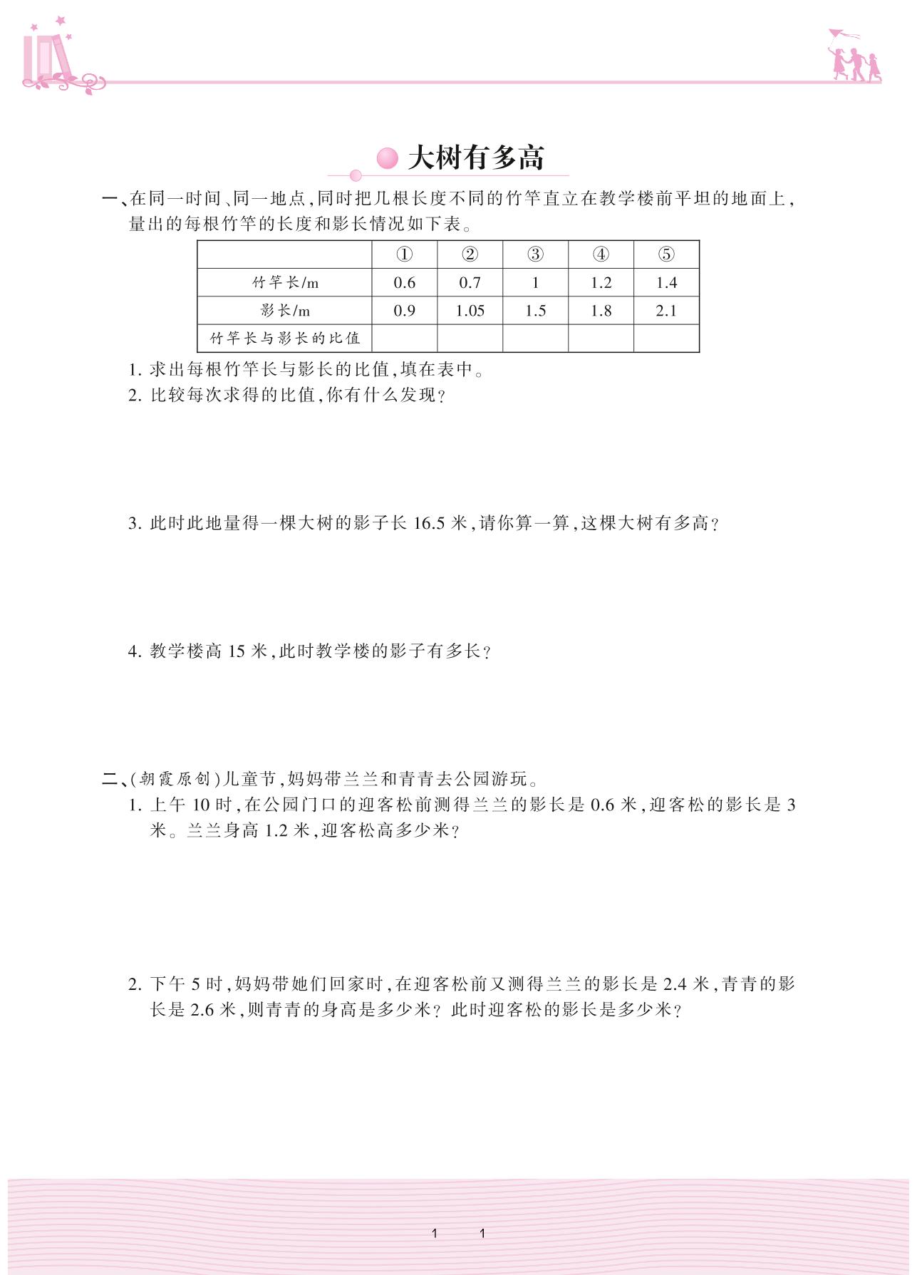 2021下册六年级数学苏教版 六 正比例和反比例——大树有多高