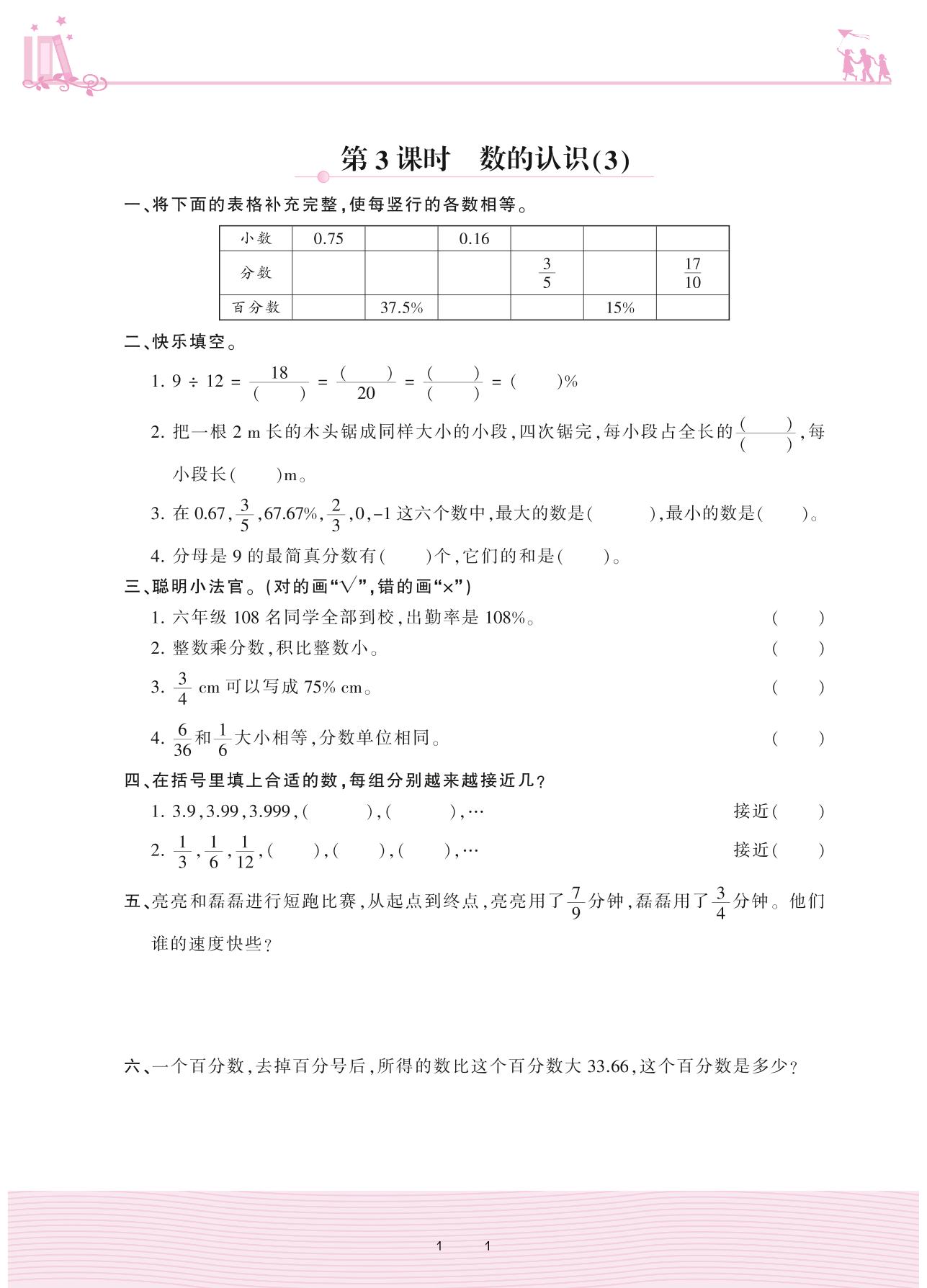 2021下册六年级数学苏教版 七 总复习 1. 数与代数——第3课时 数的认识(3)
