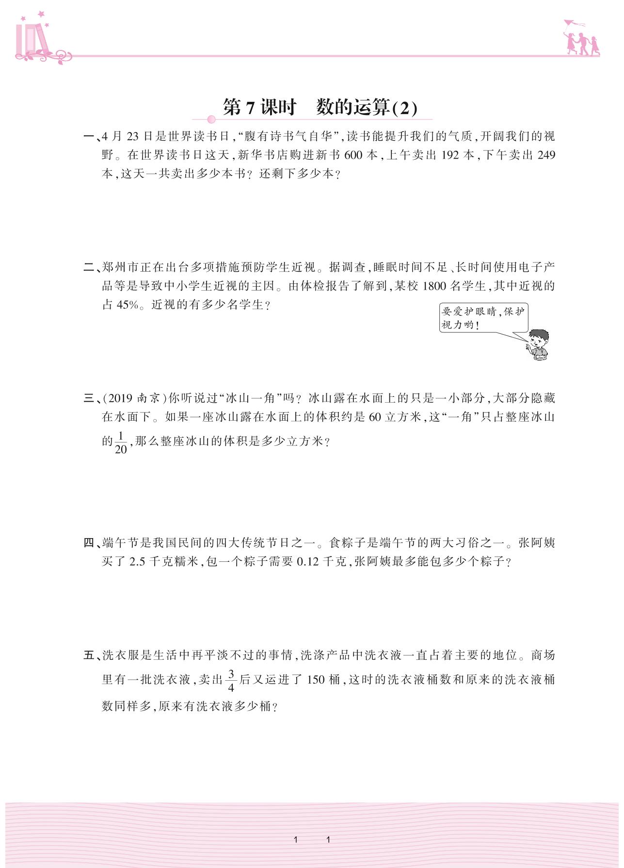 2021下册六年级数学苏教版 七 总复习 1. 数与代数——第7课时 数的运算(2)