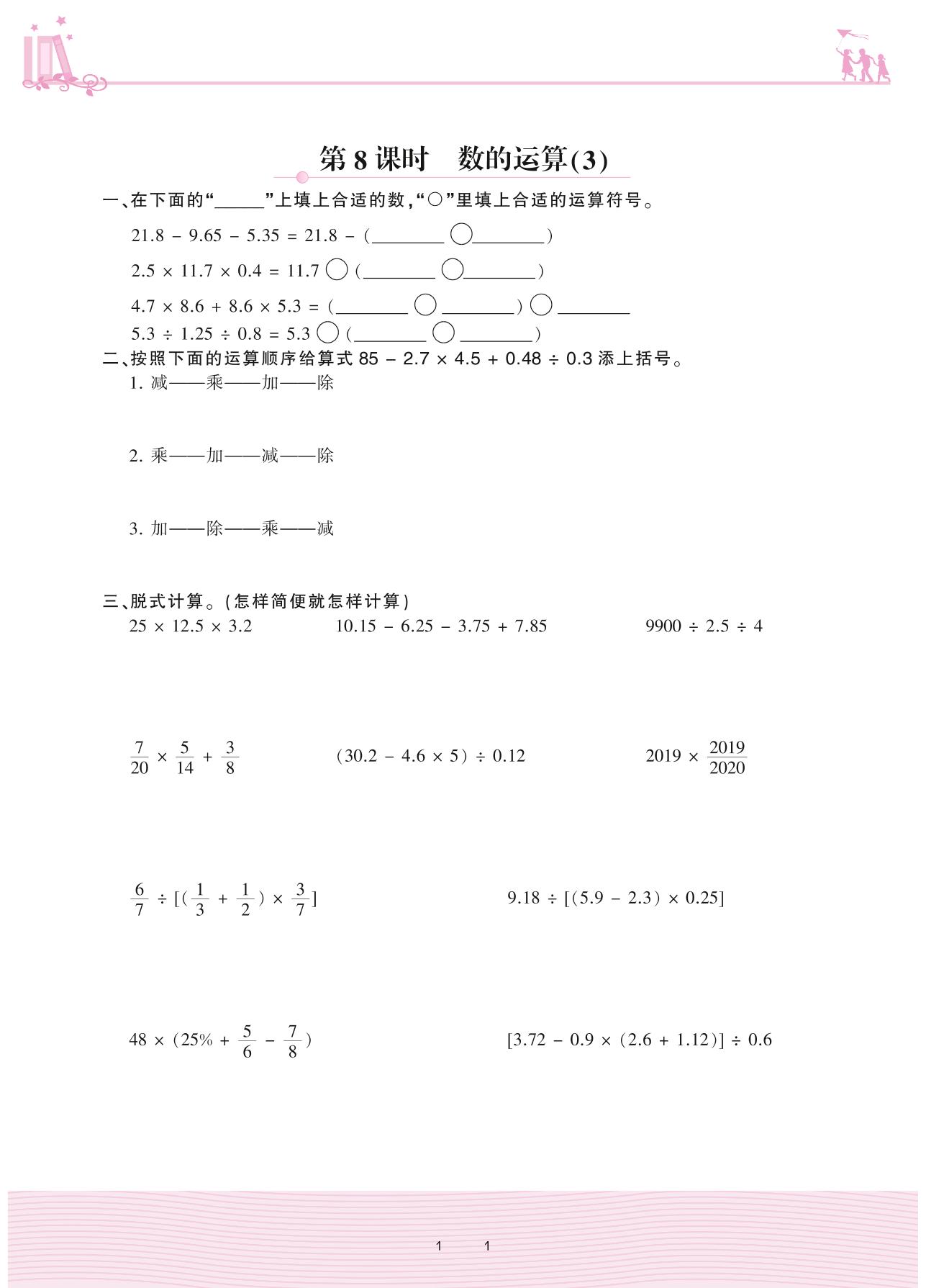 2021下册六年级数学苏教版 七 总复习 1. 数与代数——第8课时 数的运算(3)