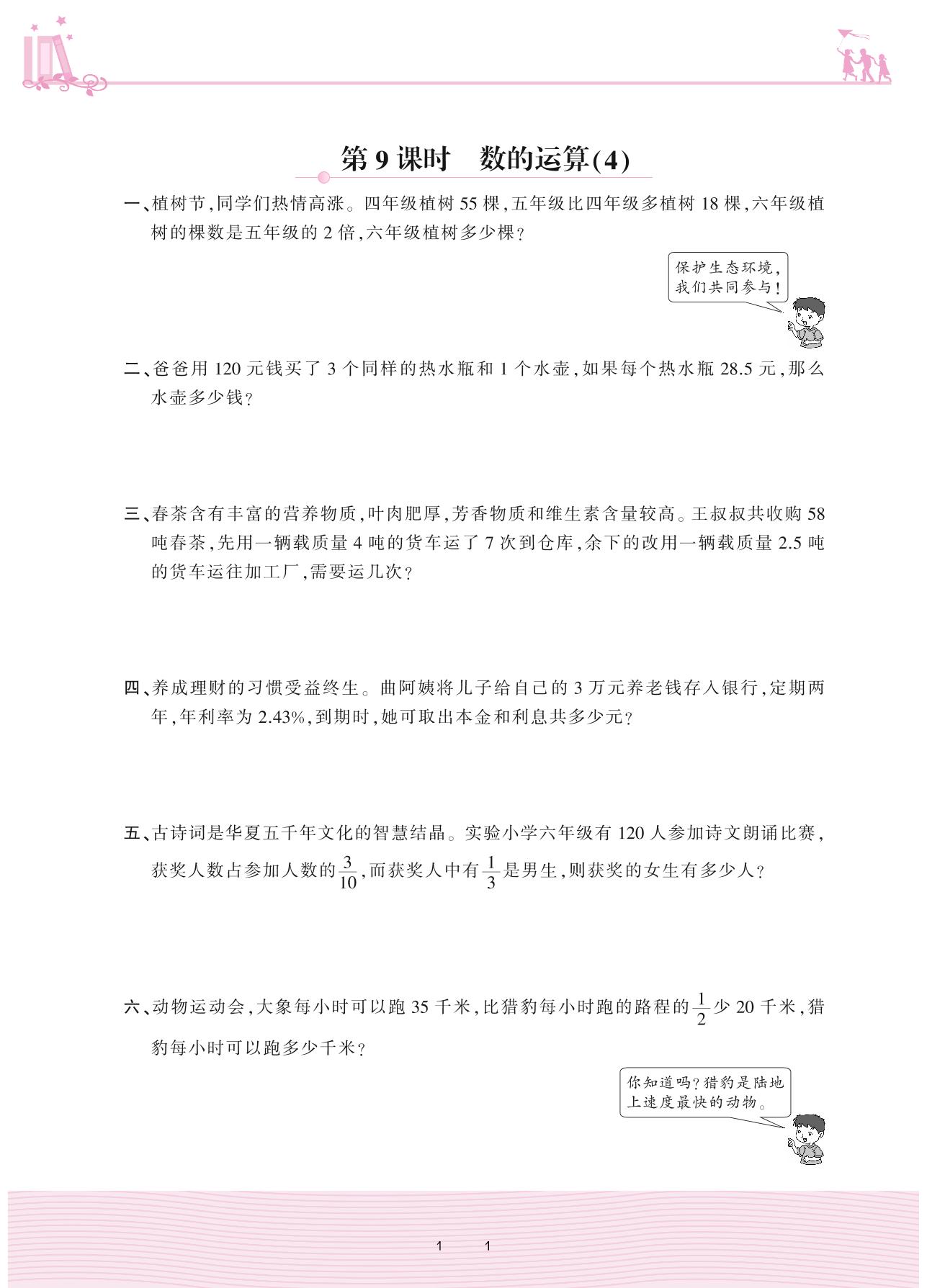 2021下册六年级数学苏教版 七 总复习 1. 数与代数——第9课时 数的运算(4)