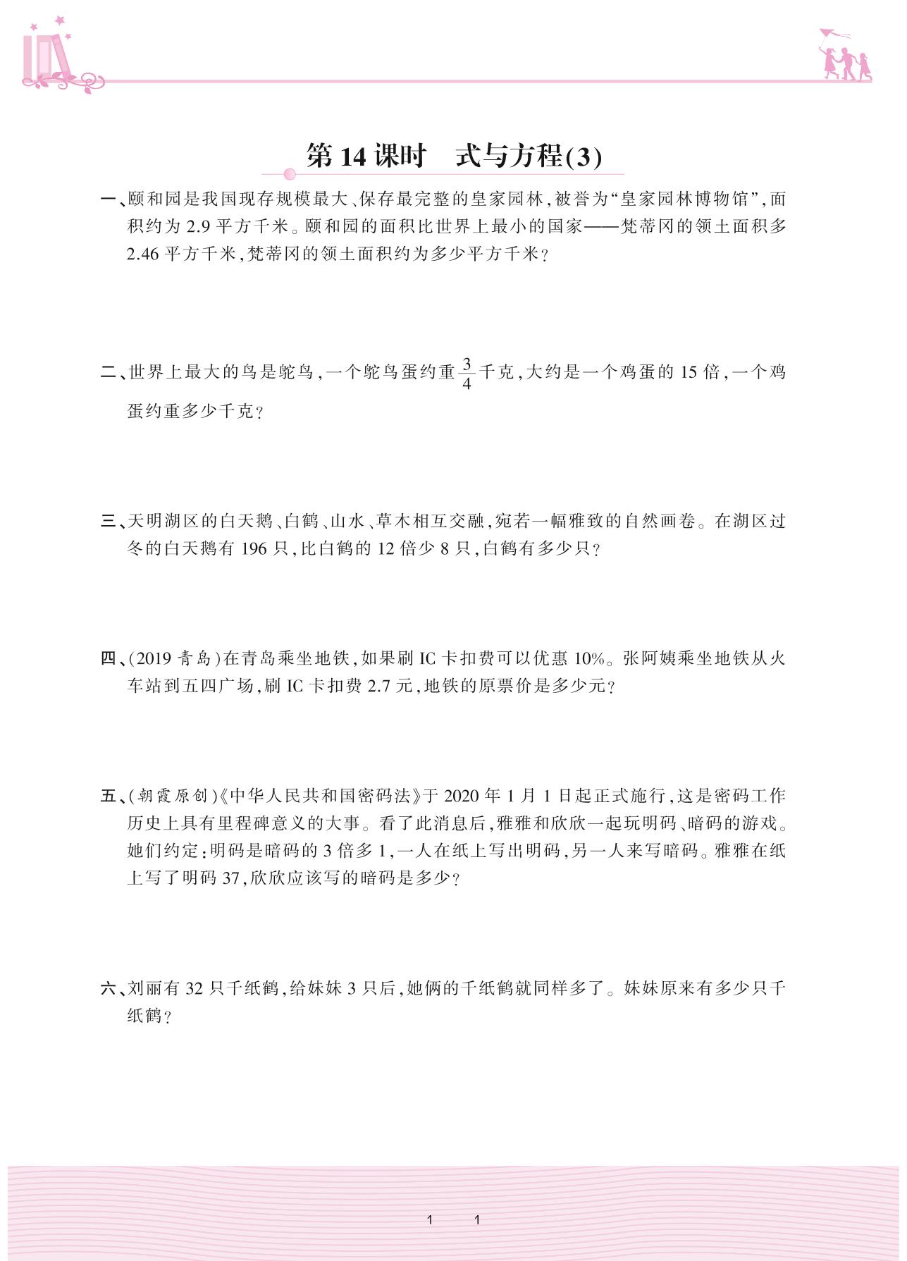 2021下册六年级数学苏教版 七 总复习 1. 数与代数——第14课时 式与方程(3)