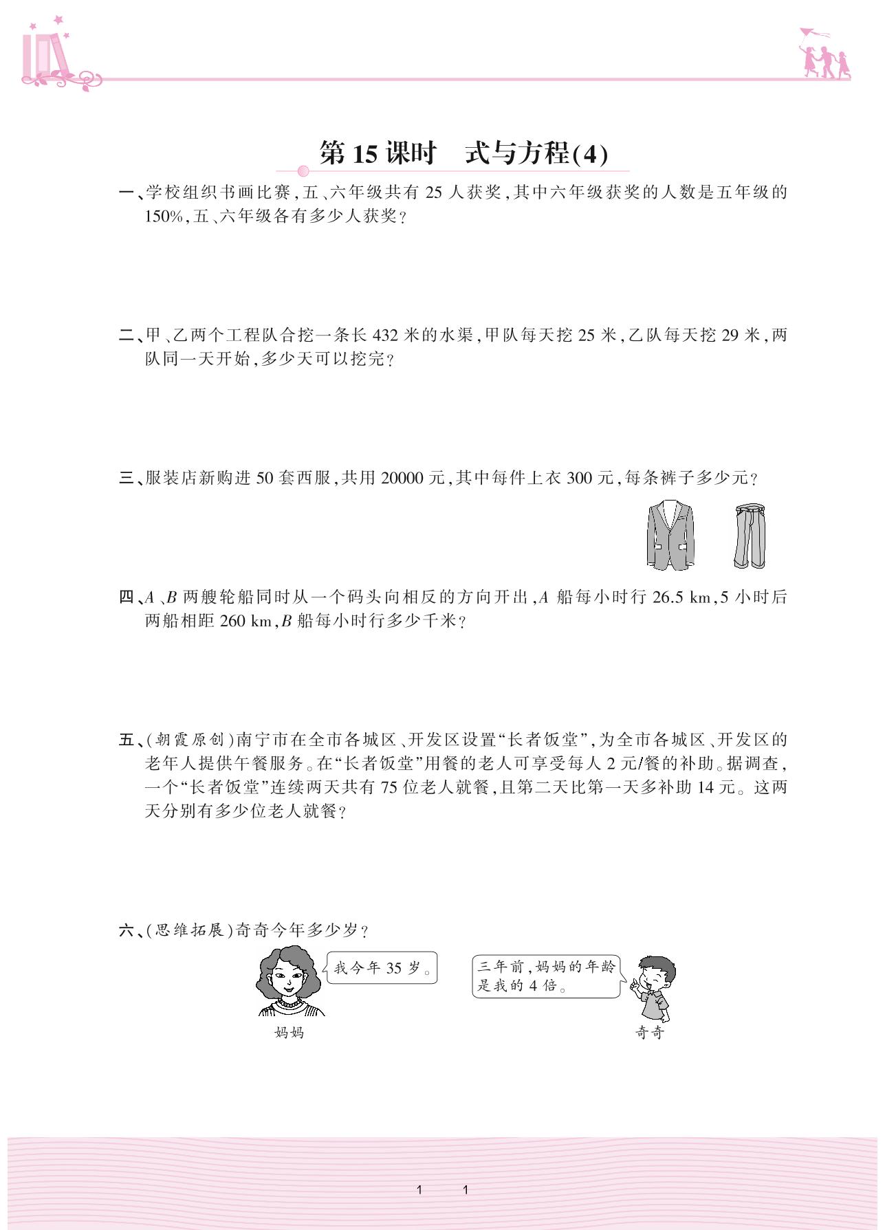 2021下册六年级数学苏教版 七 总复习 1. 数与代数——第15课时 式与方程(4)