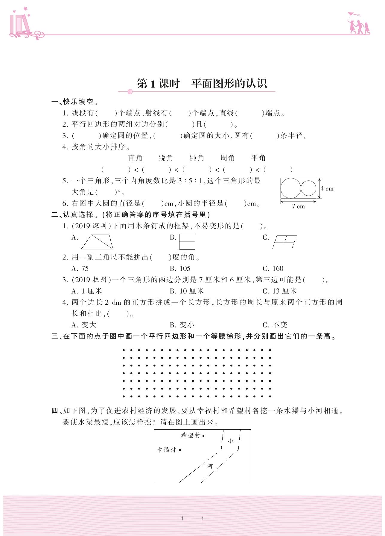2021下册六年级数学苏教版 七 总复习 2. 图形与几何——第1课时 平面图形的认识