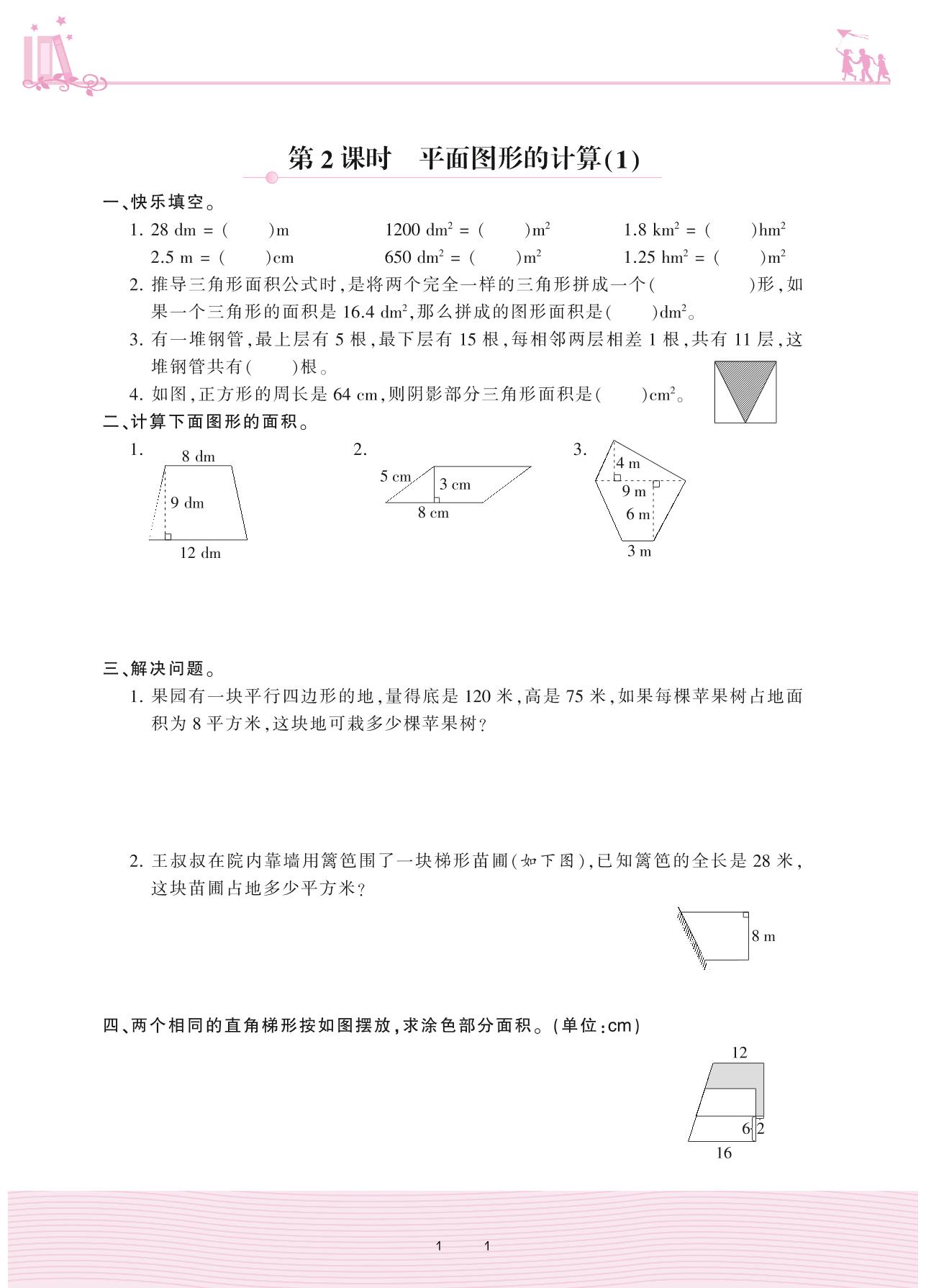 2021下册六年级数学苏教版 七 总复习 2. 图形与几何——第2课时 平面图形的计算(1)