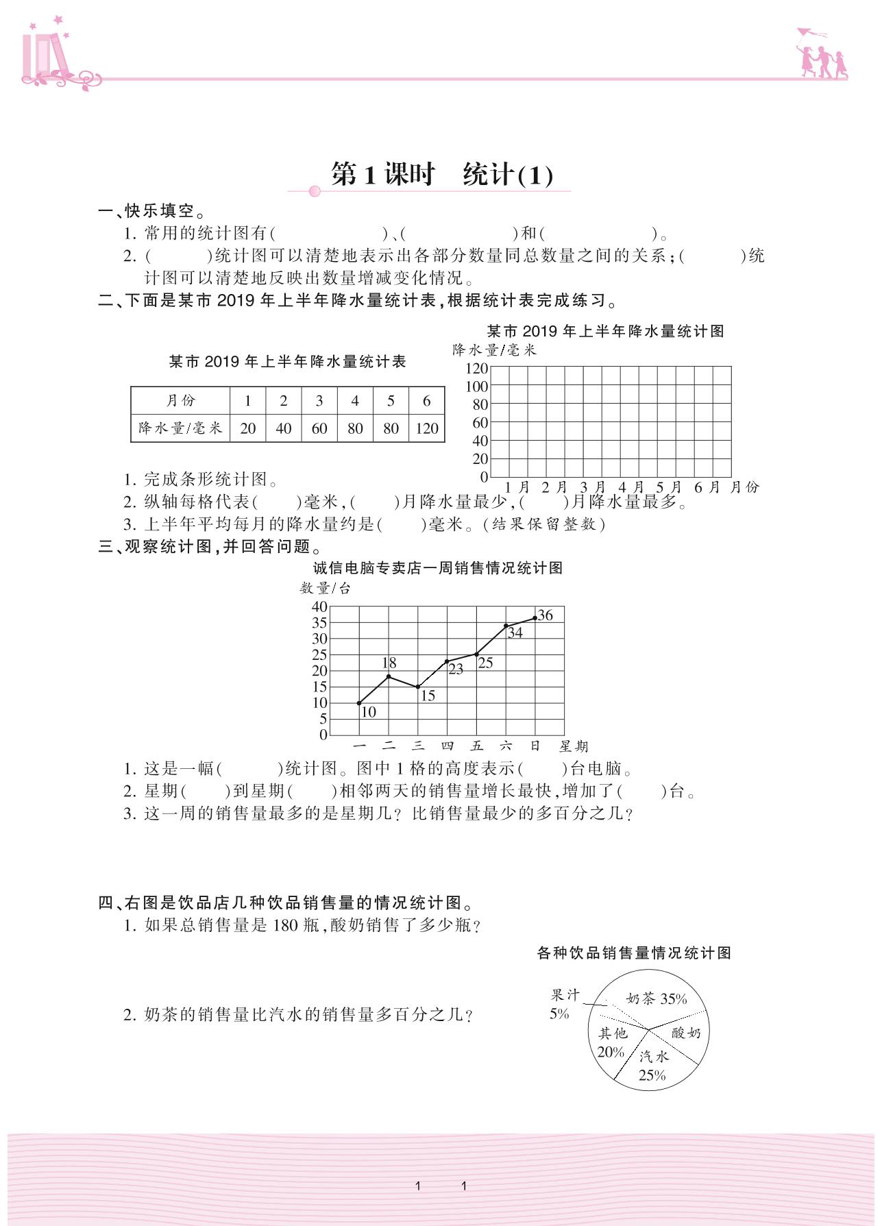 2021下册六年级数学苏教版 七 总复习 3. 统计与可能性——第1课时 统计(1)