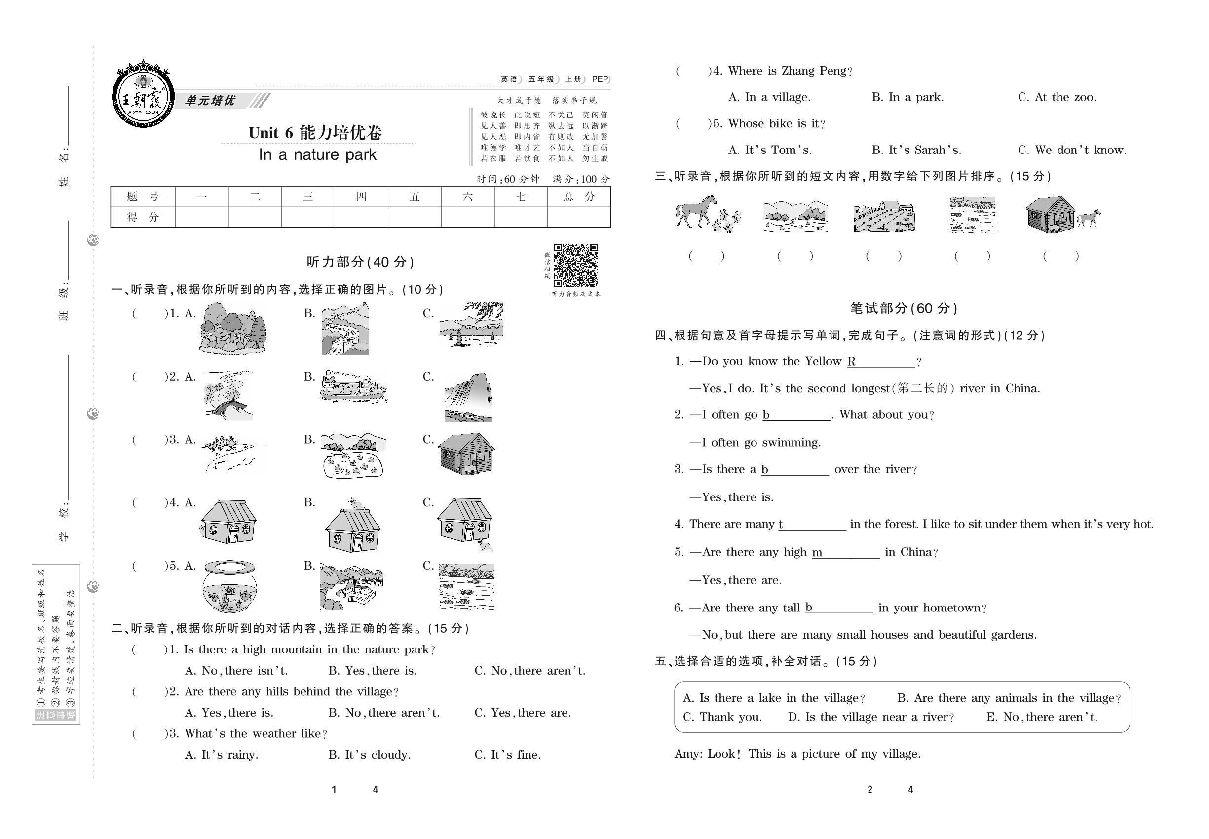 2020上册五年级英语PEP版 Unit 6 能力培优卷