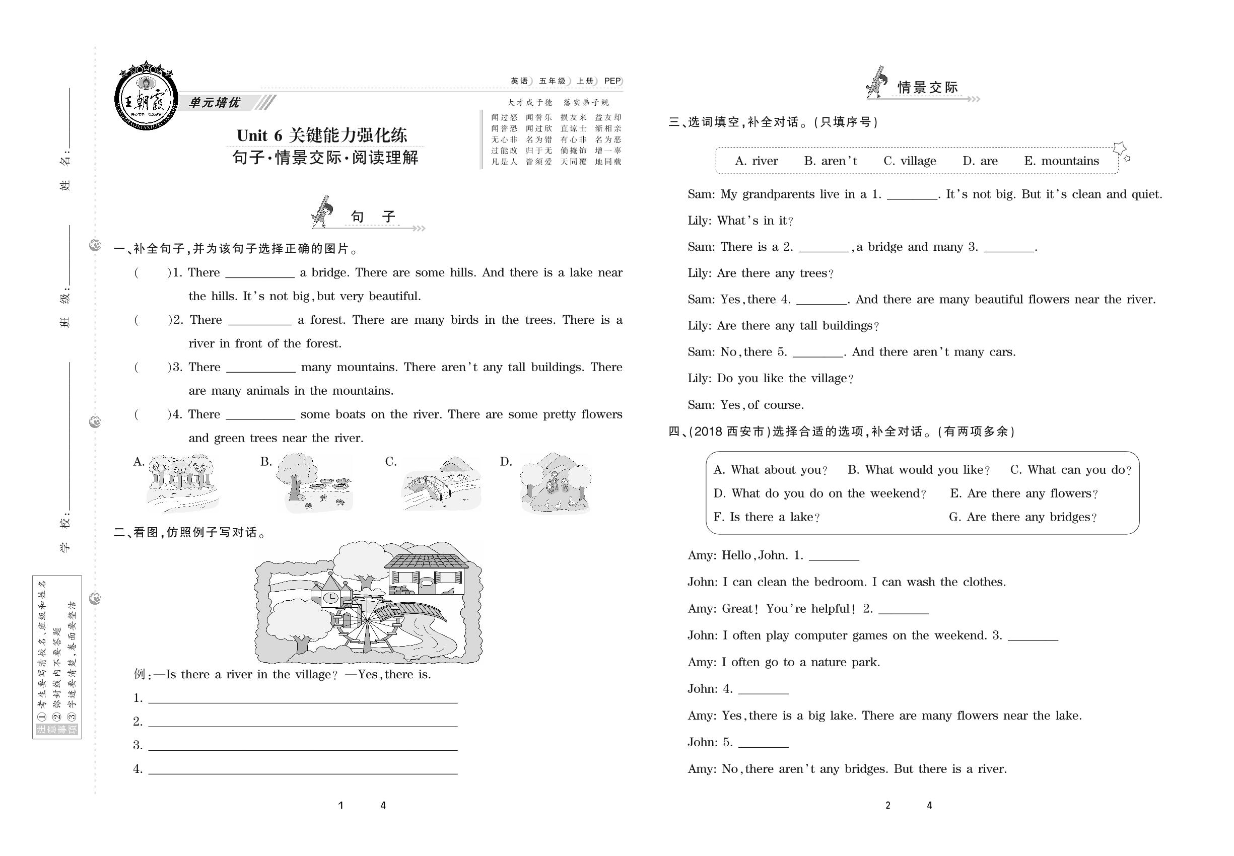 2020上册五年级英语PEP版 Unit 6 关键能力强化练