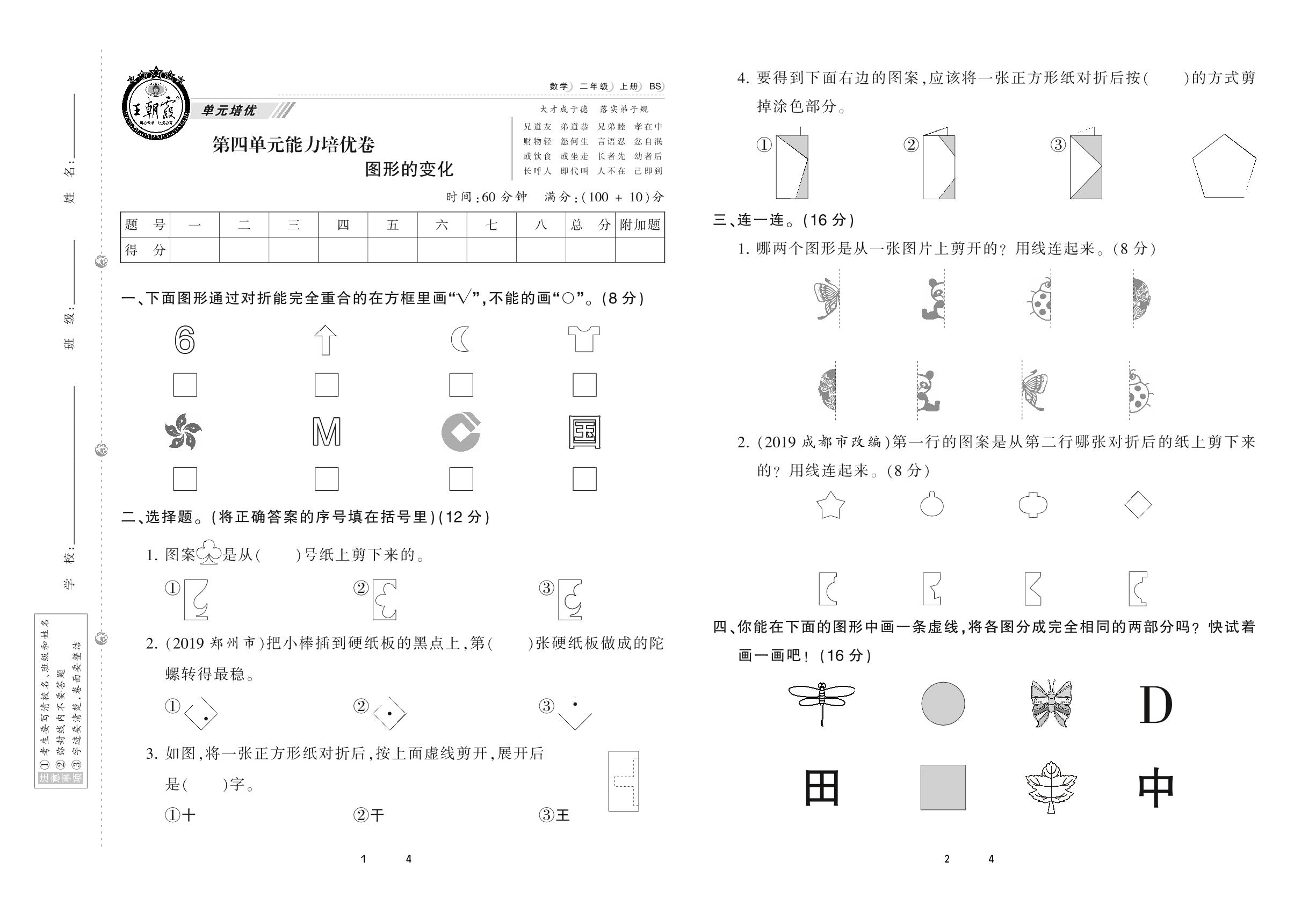 2020上册二年级数学北师版 第四单元 能力培优卷