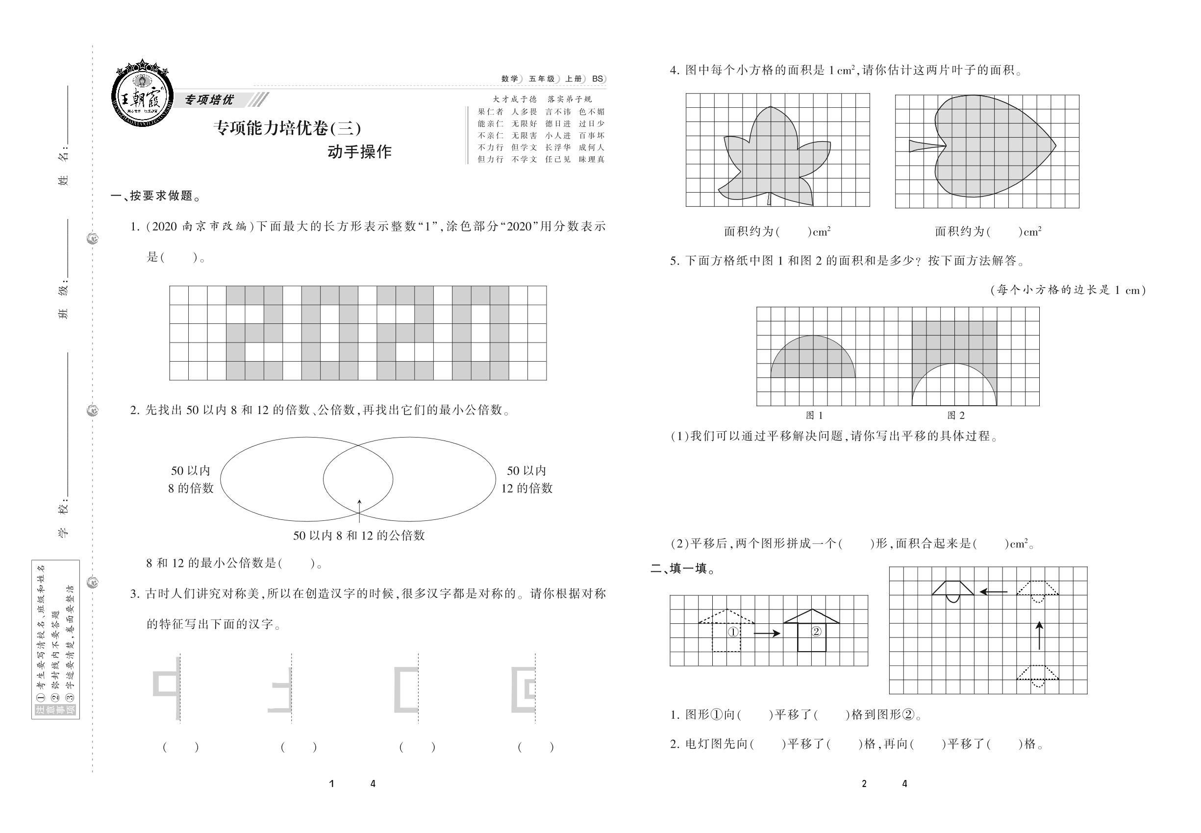 2020上册五年级数学北师版 专项能力培优卷(三) 动手操作