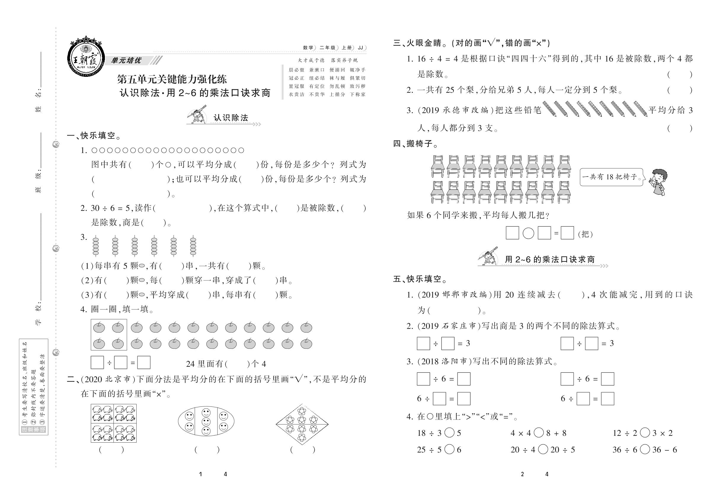 2020上册二年级数学冀教版 第五单元 关键能力强化练