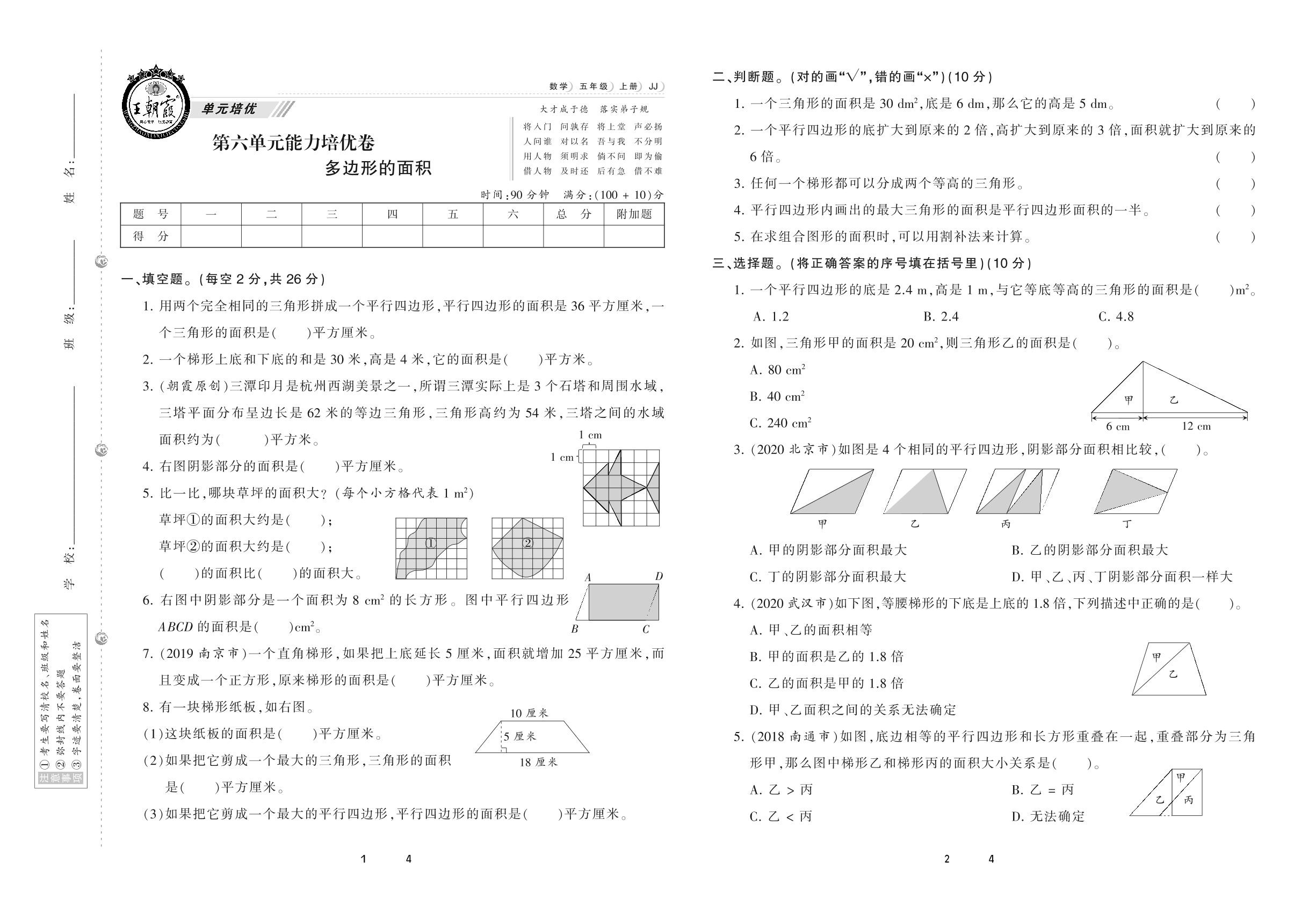 2020上册五年级数学冀教版 第六单元 能力培优卷