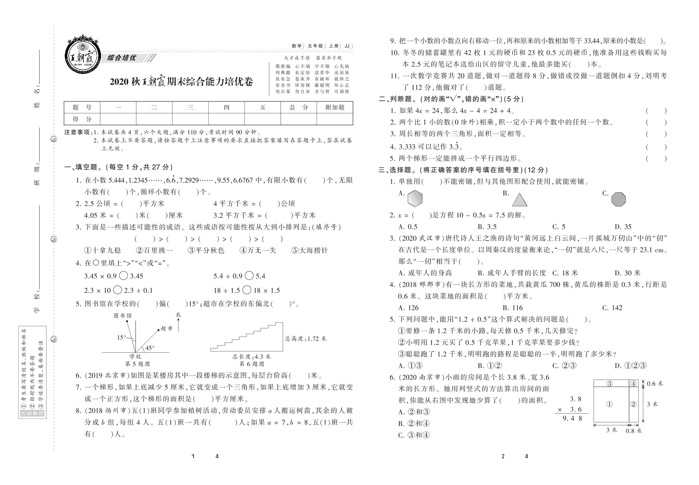 2020上册五年级数学冀教版 王朝霞期末综合能力培优卷