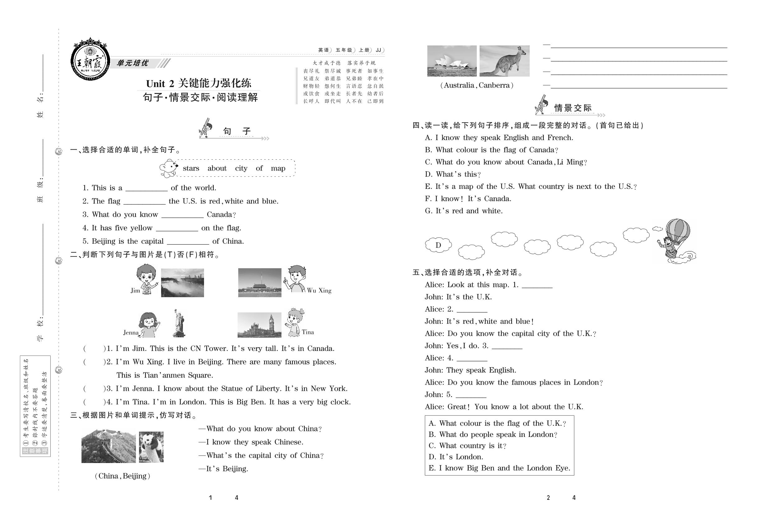 2020上册五年级英语冀教版 Unit 2 关键能力强化练