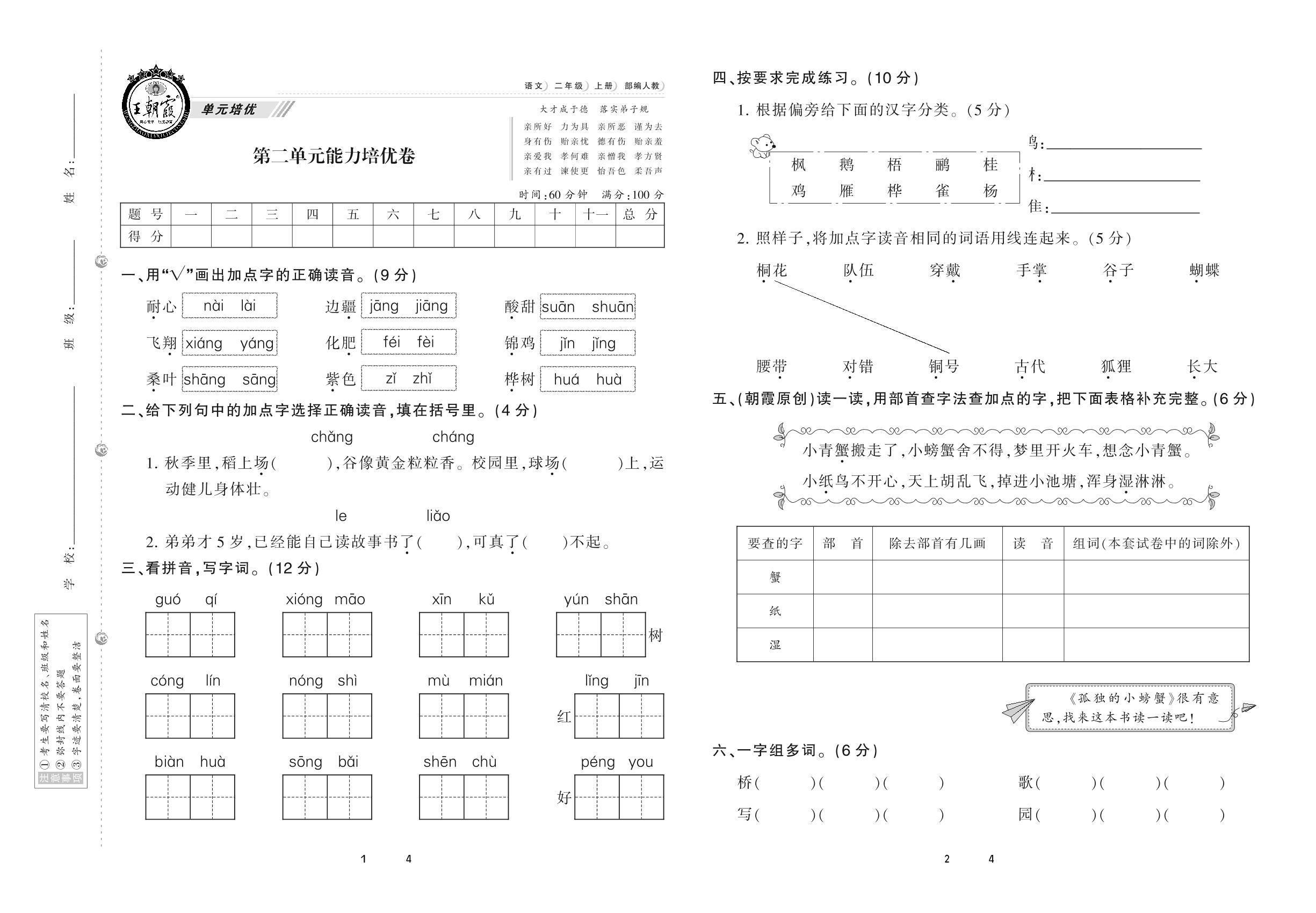 二年级语文人教版上册单元卷