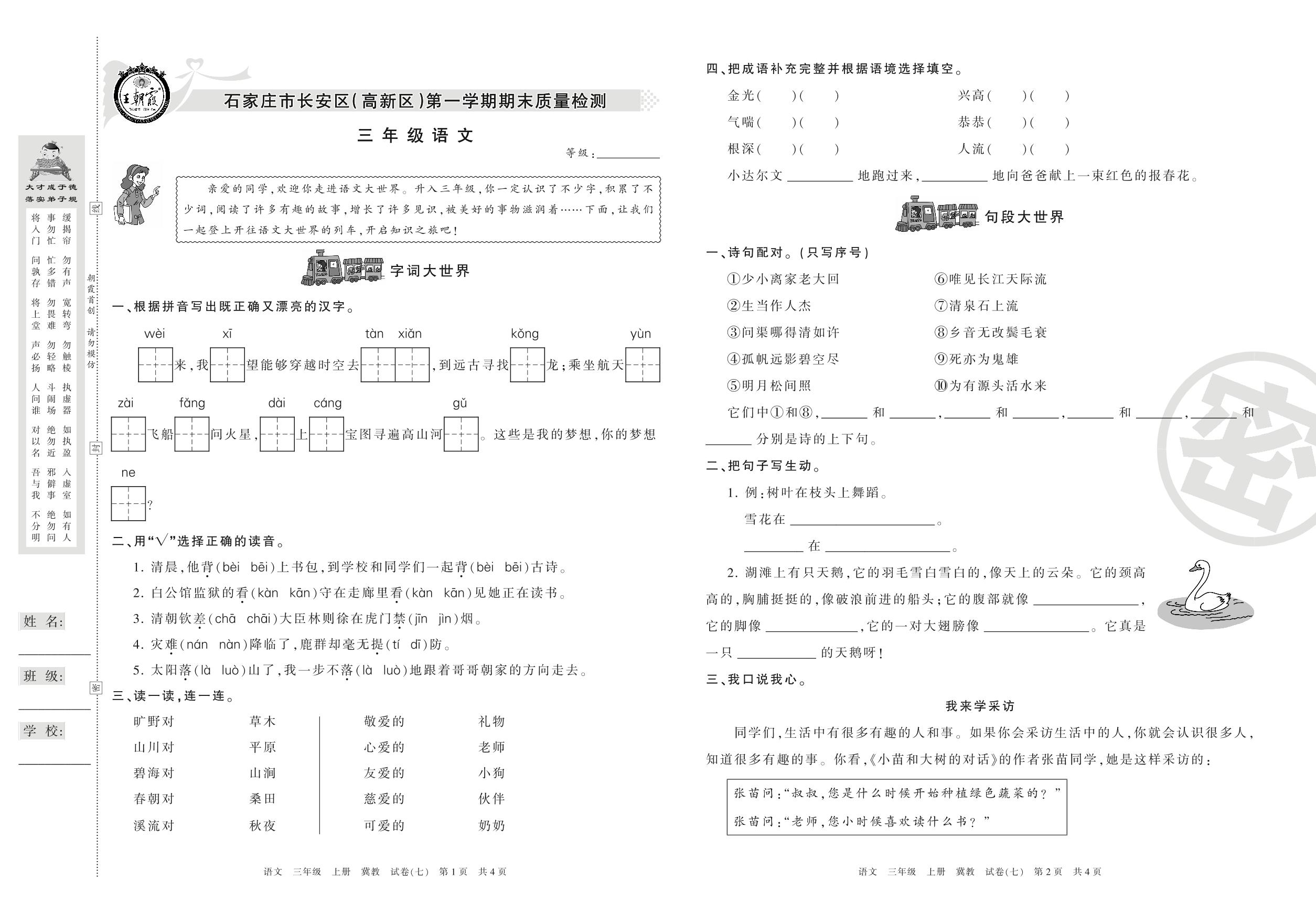 2016-2017学年第一学期石家庄市长安区(高新区)三年级语文试卷(冀教版)_R210801101012【7】