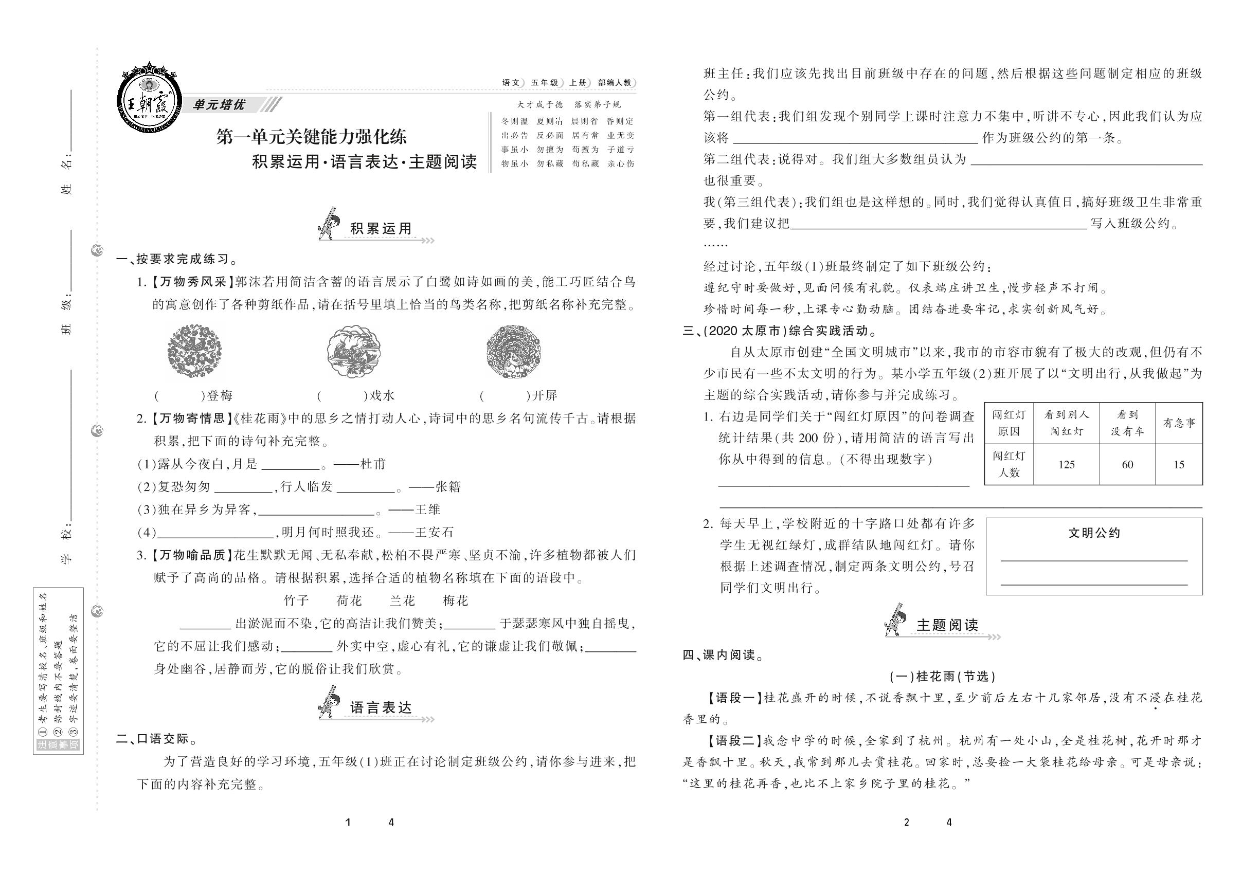 2020上册五年级语文人教版 第一单元 关键能力强化练