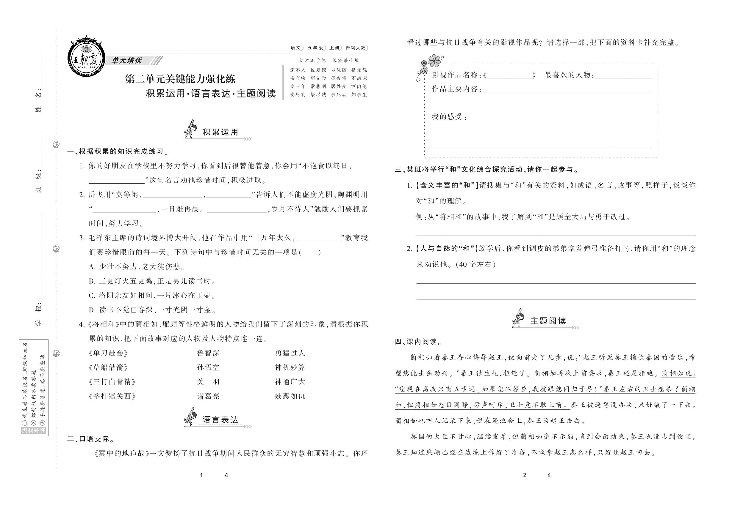 2020上册五年级语文人教版 第二单元 关键能力强化练