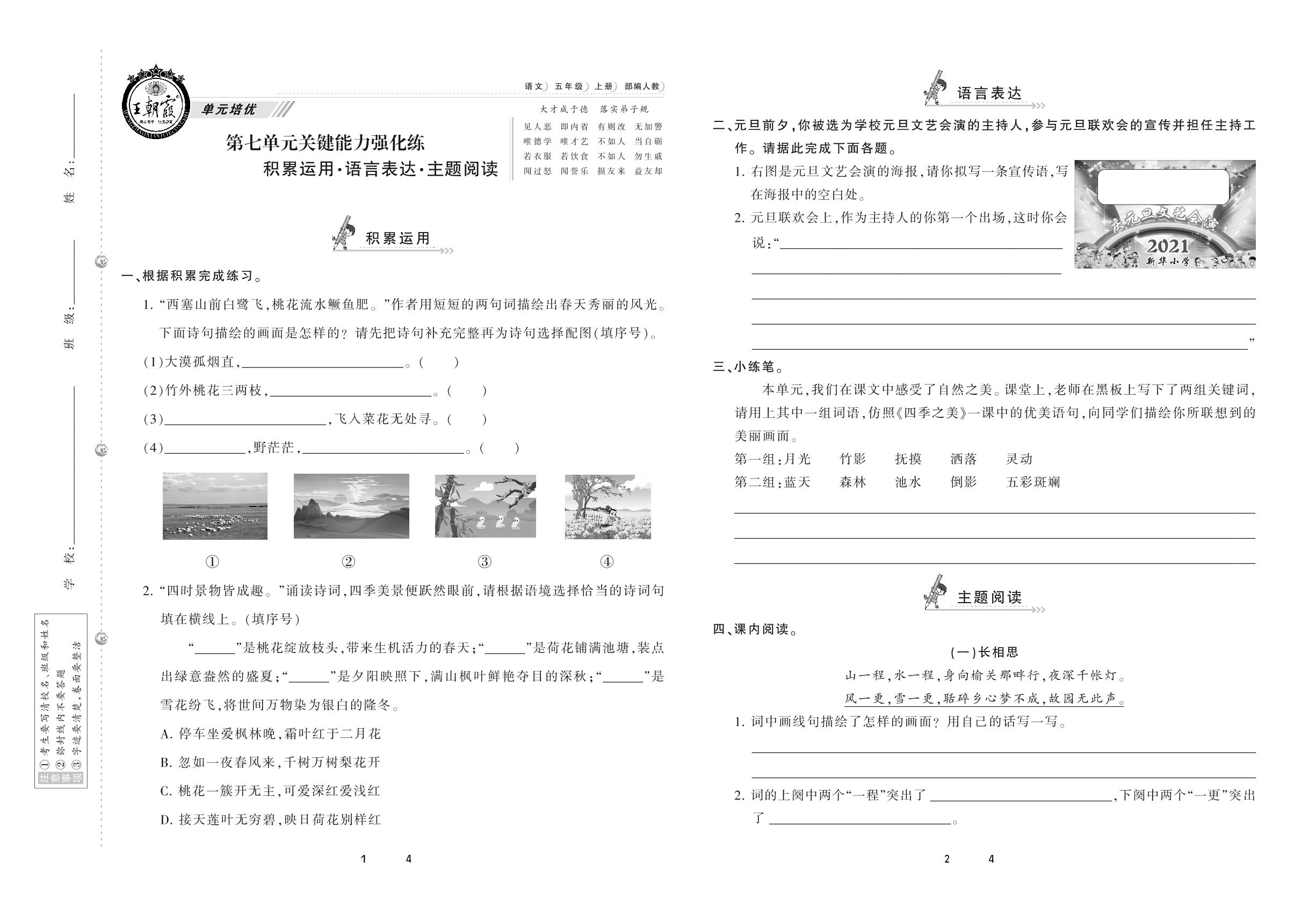 2020上册五年级语文人教版 第七单元 关键能力强化练