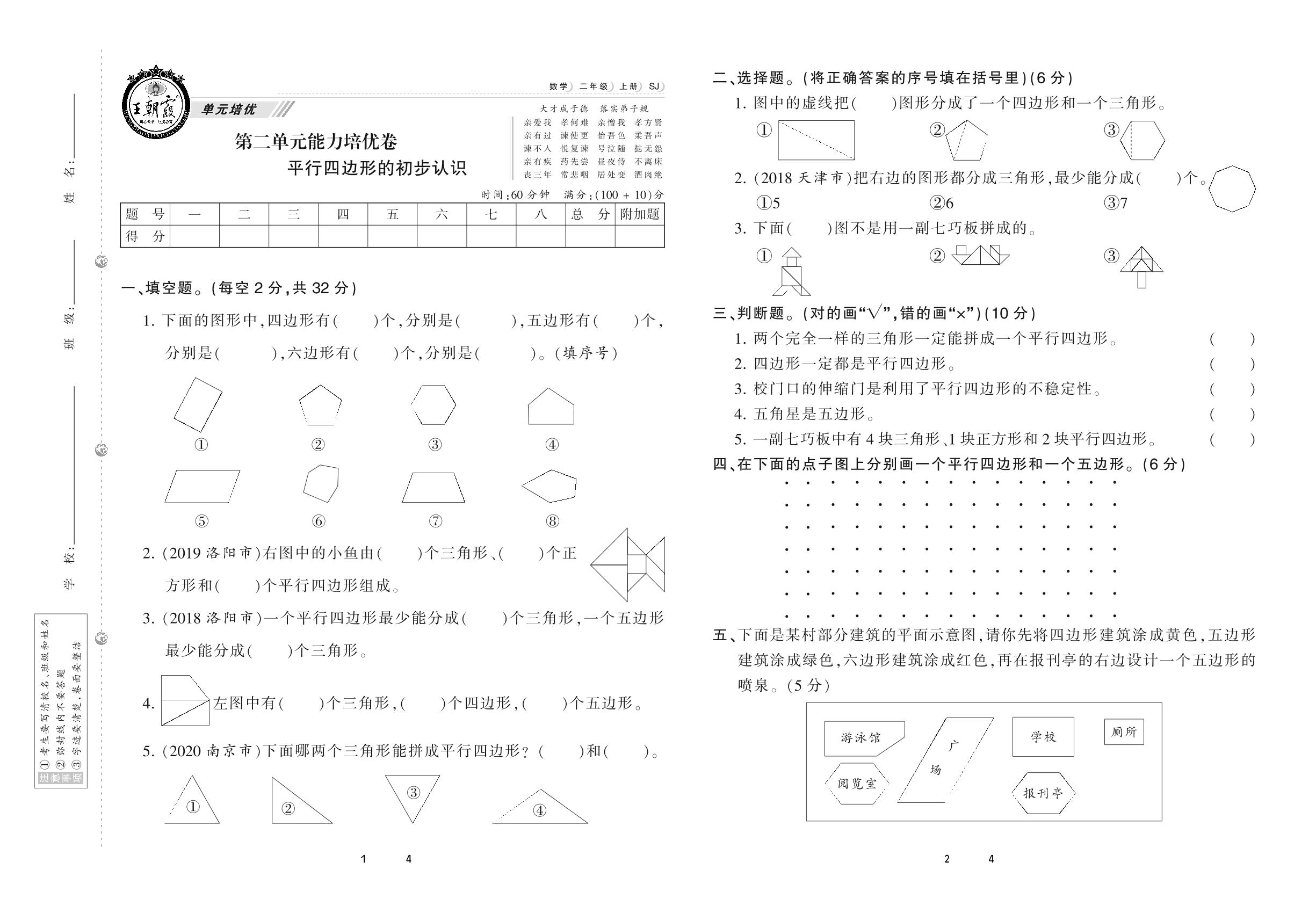 二年级数学苏教版上册单元卷